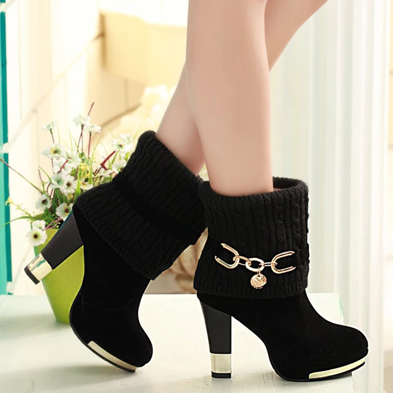 Рождественские женские ботинки, Зимние Замшевые ботинки на Высоком ...