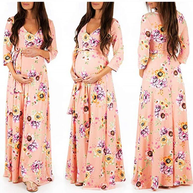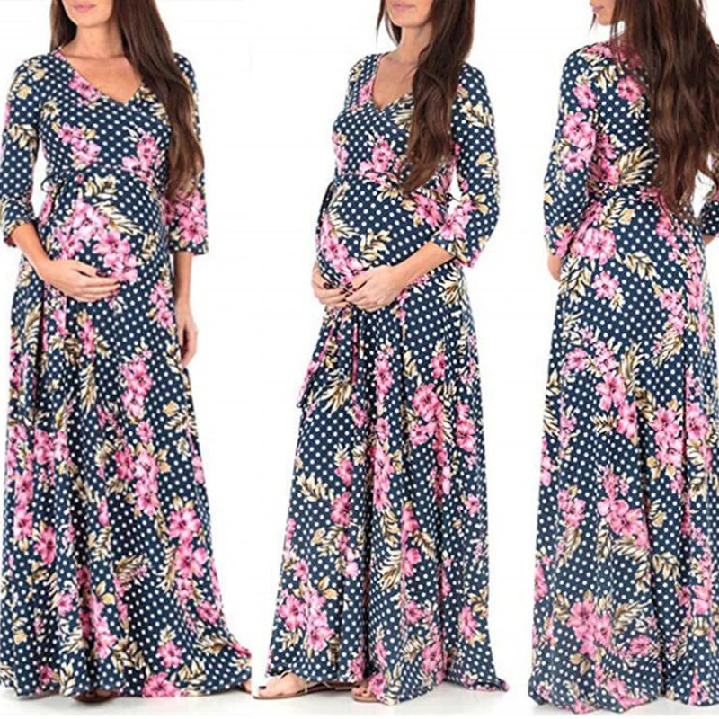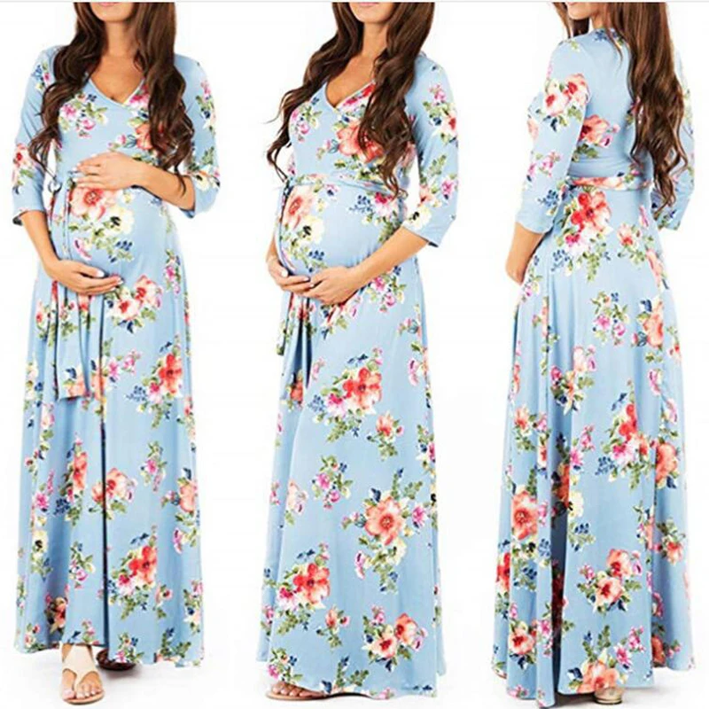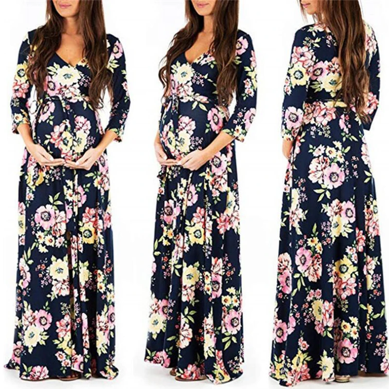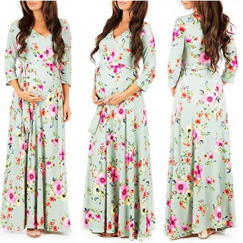 Длинные платья для беременных с принтом, с V-образным вырезом, для фотосессии