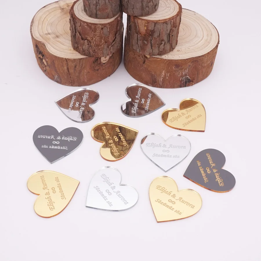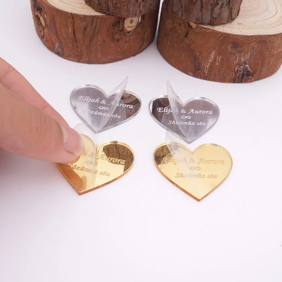 30 комплектовпартия пользовательское имя 2 мм маленькое Сердечко из теги для гостей подарки акриловые зеркала пригласительных билетов Свадебная вечеринка свадебные сувениры