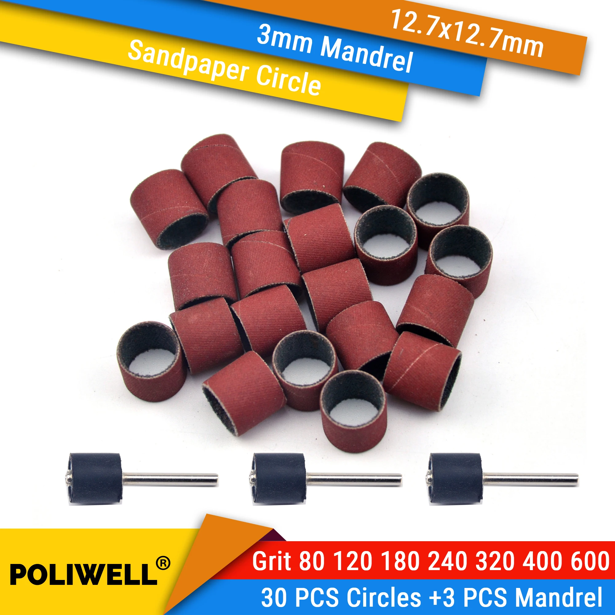 30 шт. цилиндрические наждачные бумажные круги + 3 шт. 3 мм хвостовик 12 дюйма шлифовальные круги полировочные шлифовальные ленты инструменты для сверления аксессуары