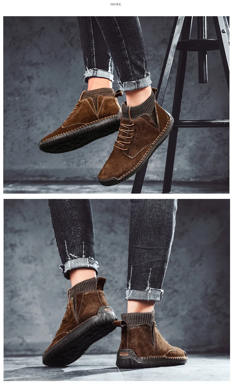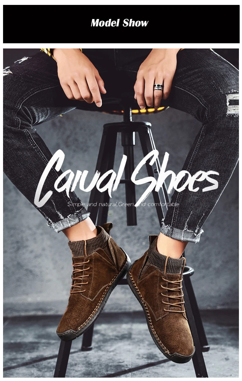 Ботинки мужские, из искусственной замши, теплые, зимние, дышащие