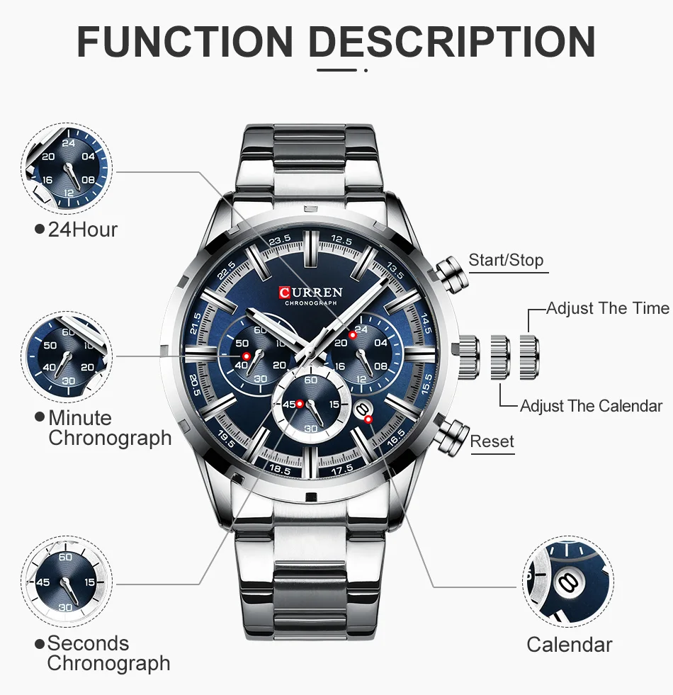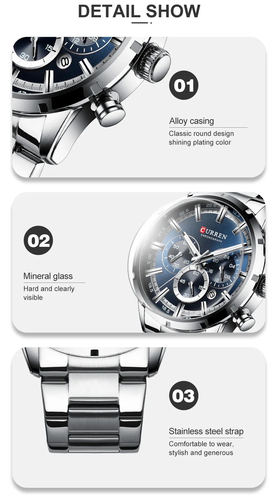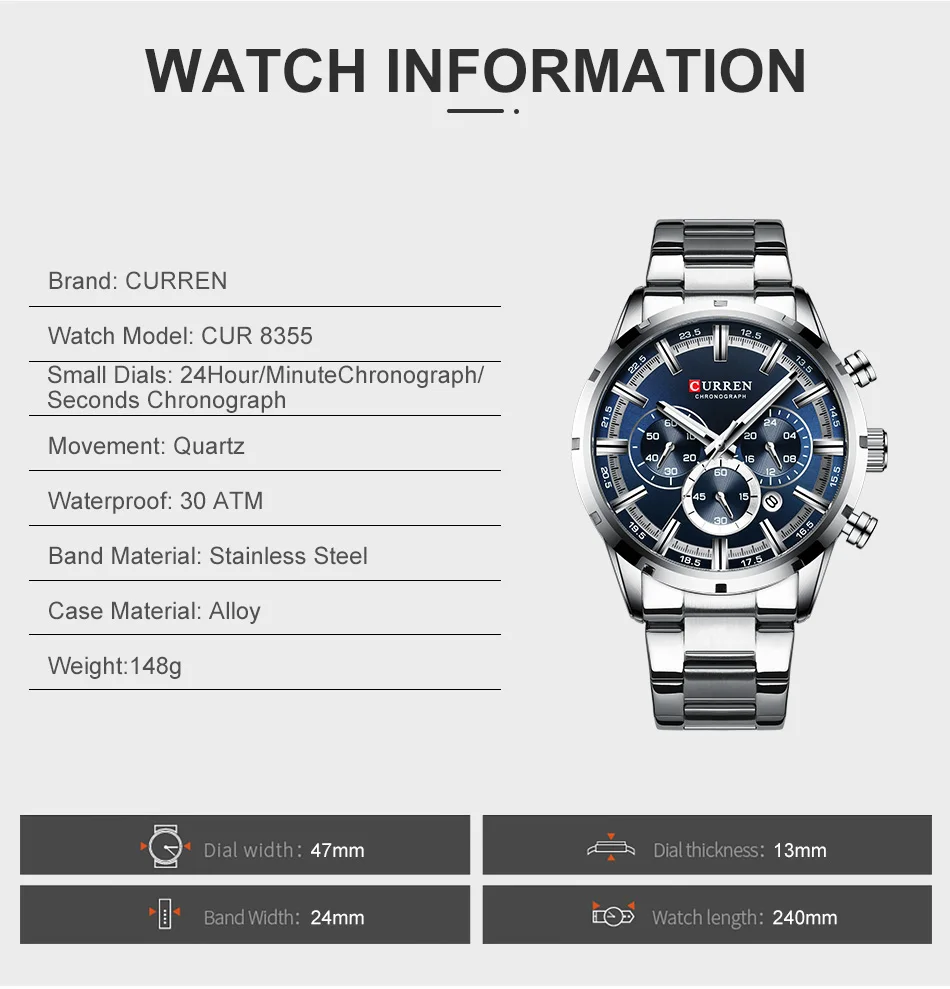 100% новые мужские часы с биркой1 х CURREN Роскошные дизайнерские спортивные мужские часы