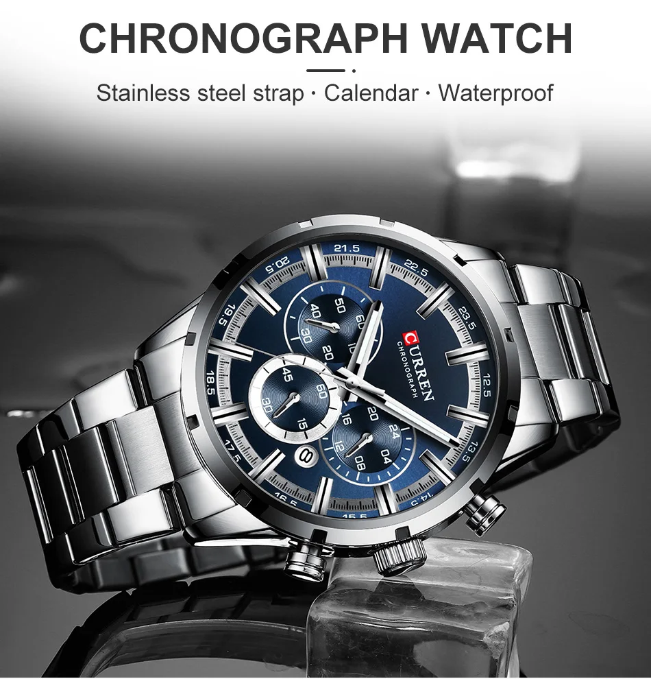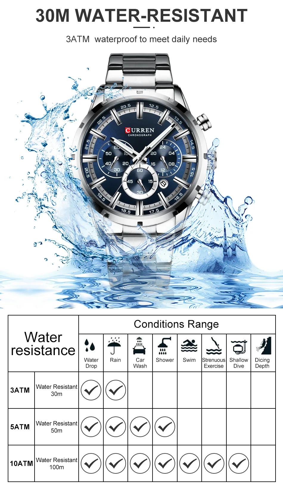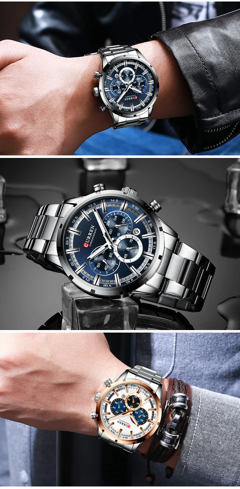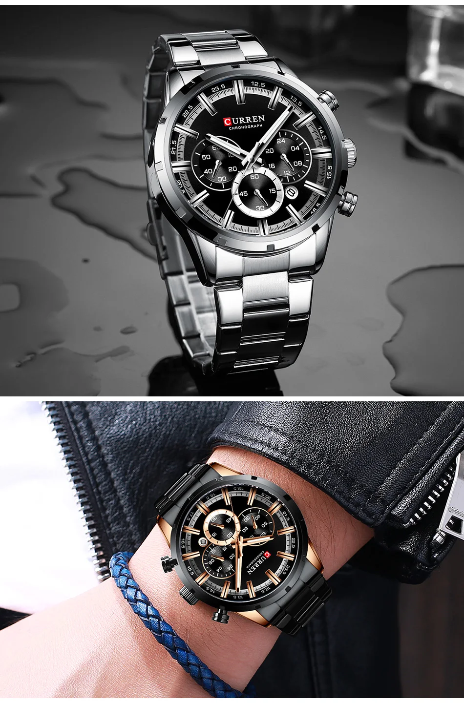 Часы наручные CURREN Мужские кварцевые, брендовые Роскошные модные деловые водонепроницаемые повседневные