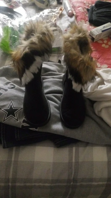 Я в ужасе,такого,за столько лет знакомства с "АЛИ" у меня еще не было!!! мех исусственный мятый, пришит кое-как ,такое впечатлееие что эти сапоги уже лет десять на складе лежали,материал самих сапог-даже не знаю как обозвать,но не искусственная замша.Подошва резиновая,дурауу понятно,что будет с ней в мороз