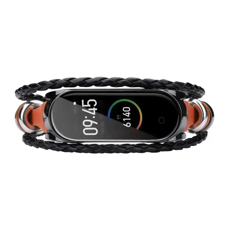 Сменный кожаный браслет с бусинами, Плетеный ремешок для Xiaomi Mi ...