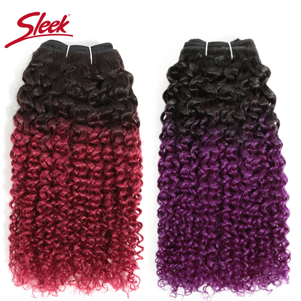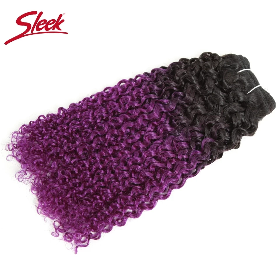 Sleek бразильские кудрявые натуральные кудрявые пучки волос двойные вытянутые Волосы Remy с волнами сделка синего и фиолетового цвета с эффектом деграде (переход от темного к светлому) с объемными волнами