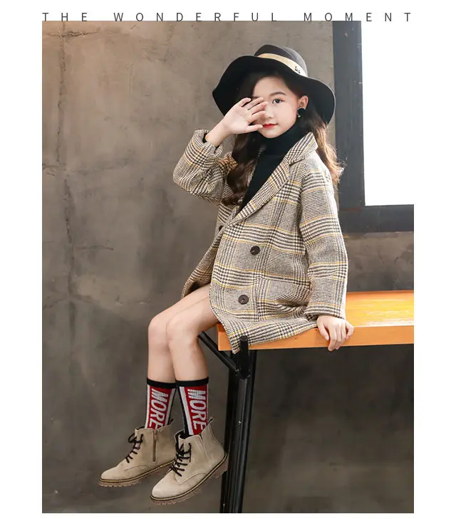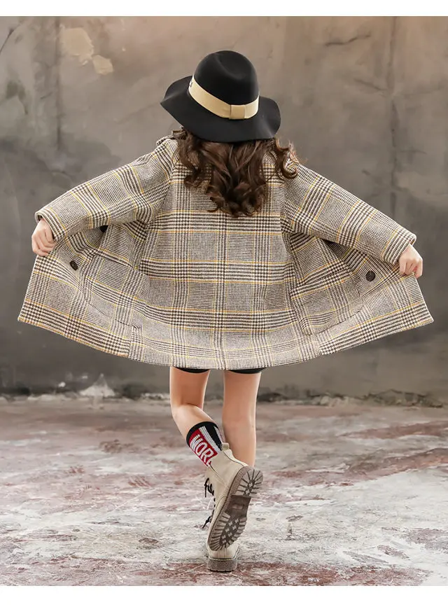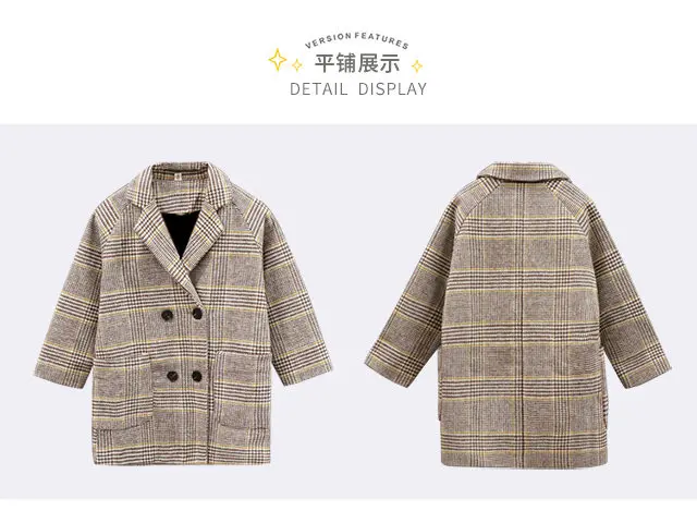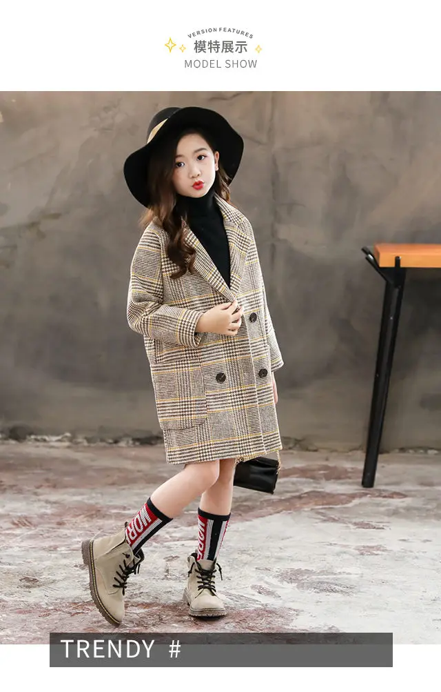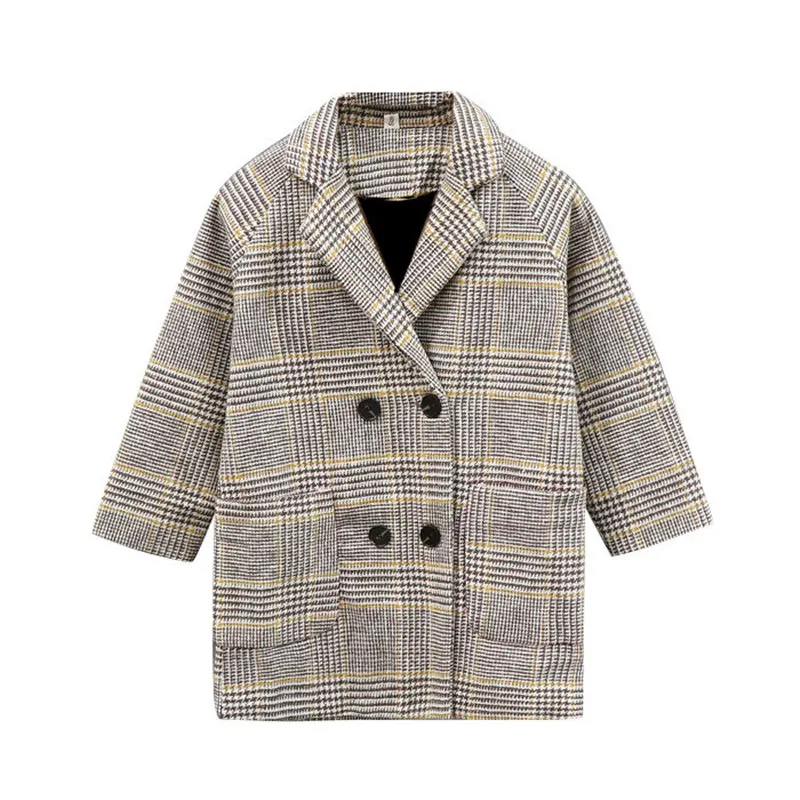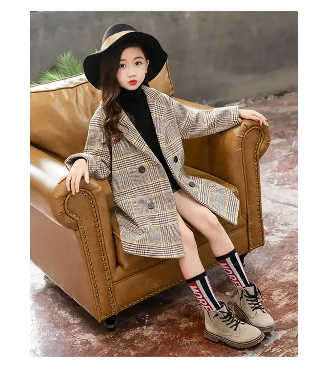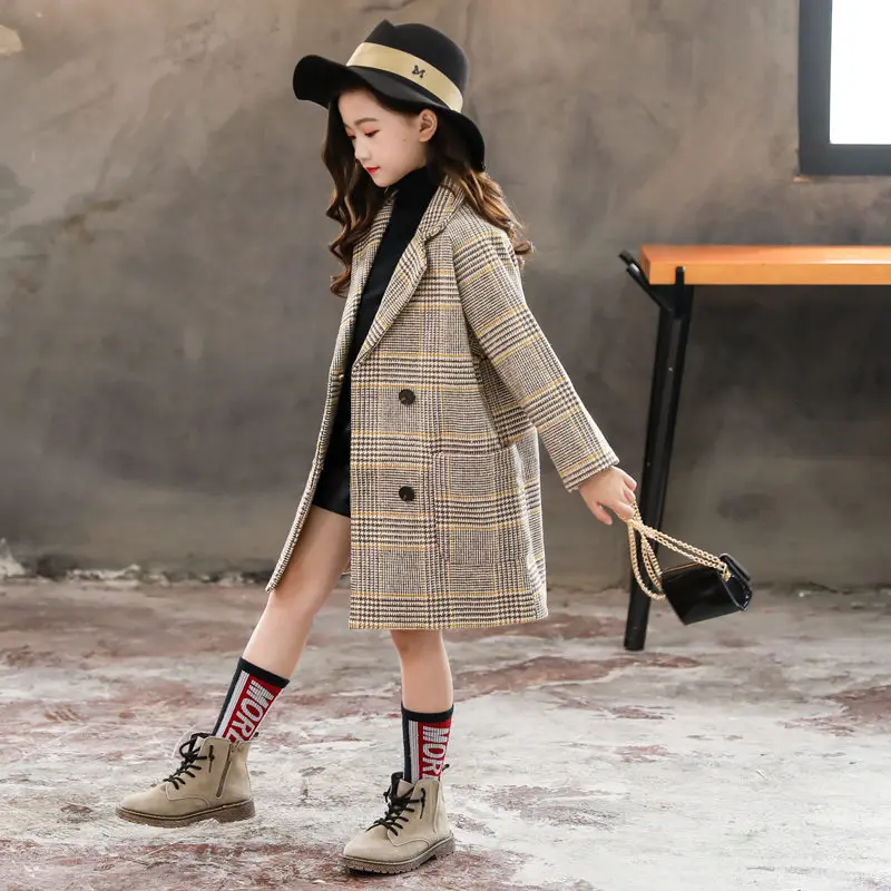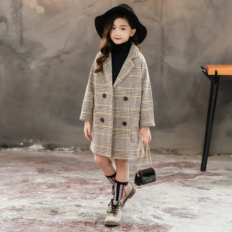 Детское пальто для девочек; Шерстяное пальто в клетку; Модное зимне...