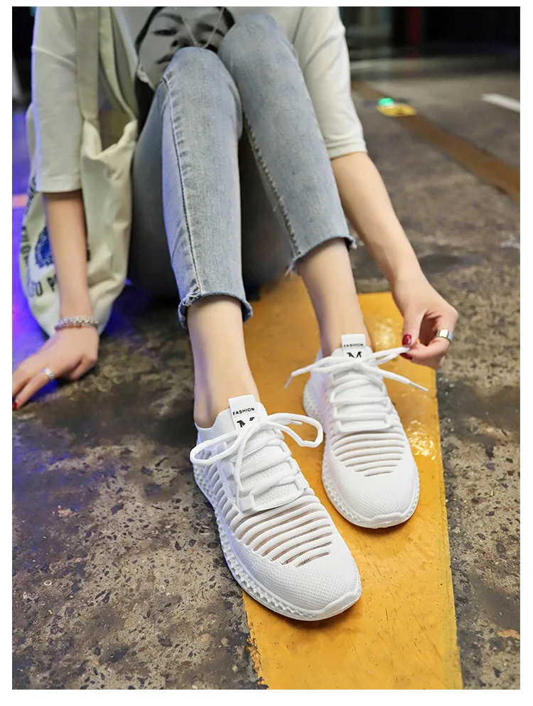 Женские повседневные кроссовки, модная дышащая сетчатая обувь на плоской подошве, однотонные желтые кроссовки со шнуровкой, женские спортивные кроссовки для спортзала и бега, 2019
