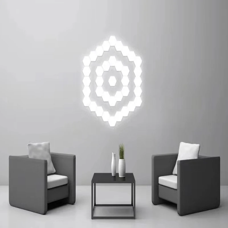 Характеристики: высококачественный абажур из АБС-пластика и поликарбоната, равномерный светильник и прочный светильник. Физическое прикосновение может включить и выключить настенный светильник. Когда тело пользователя касается поверхности, емкостный датчик выступает в качестве переключателя для открытия или закрытия каждого компонента. Компоненты могут быть легко соединены вместе с помощью магнита, расположенного на краю продукта. Шестигранная форма позволяет соединять эти компоненты и предоставляет возможности для различных конструкций. Уникальный геометрический дизайн, не только может быть освещен, но и может украсить ваш дом. Широко используется, может быть помещен в гостиную, спальню, кабинет, ресторан, отель и т. Д.