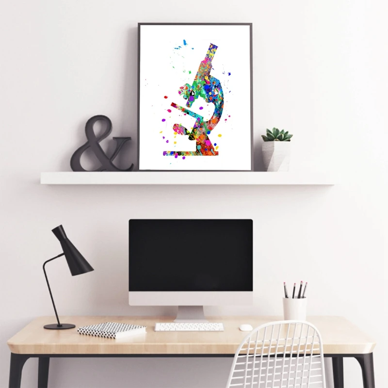 Микроскоп, акварельный художественный холст, картина с принтами, подарок ученого, микро Биологический микроскоп, плакат, офисный настенный художественный Декор