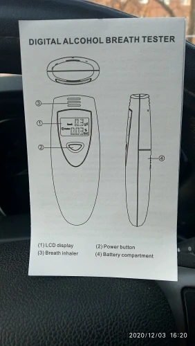 Алкотестер выглядит конечно не так как в описании, но как уверяет продавец - это обновленная версия, а я и не против, так даже лучше. А вот что важно, так это - работает ли? А он работает, что видно на фотографии. На сухую показал 0 промилле, а после выпитой бутылки пива 5,6 об. в течении 45 минут показал 0,4 промилле. Так что как карманный алкотестер, за небольшие деньги очень даже рекомендую.