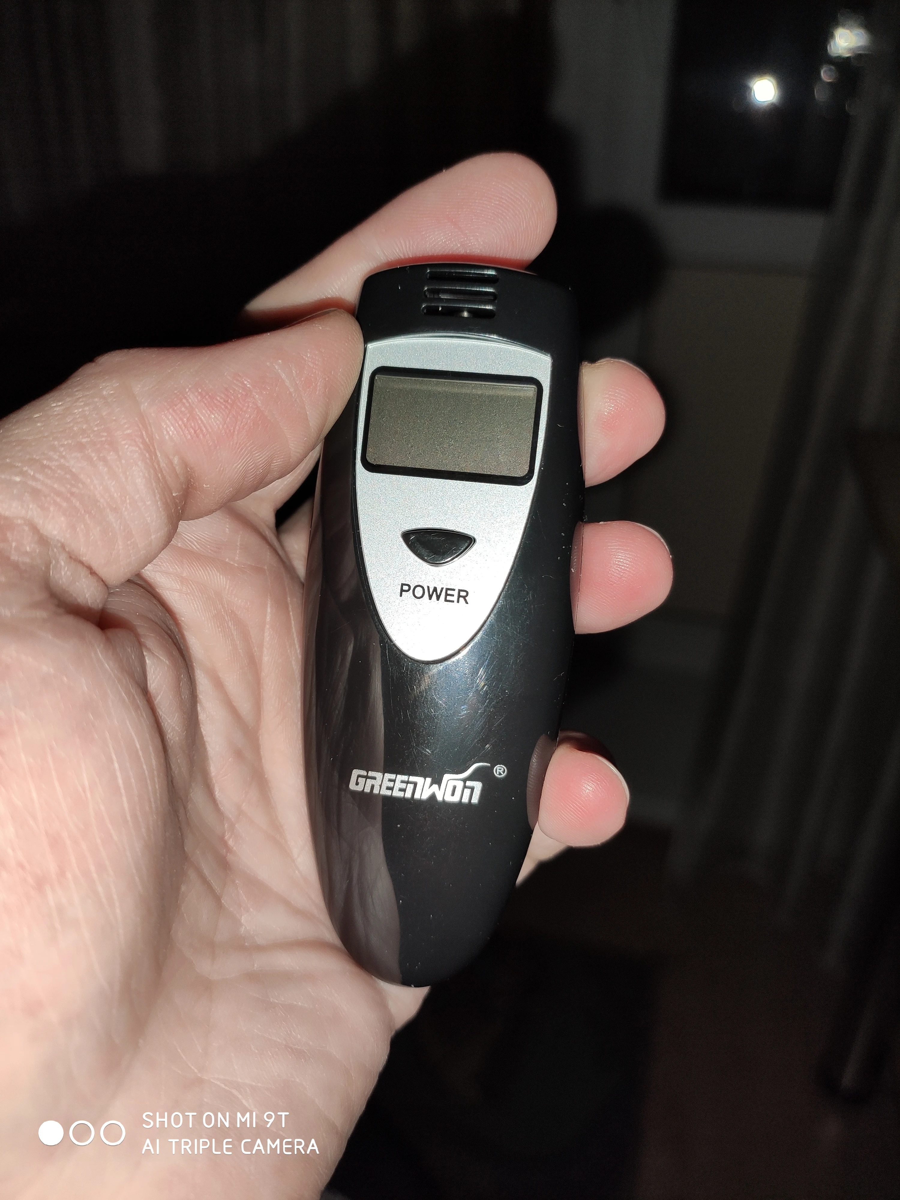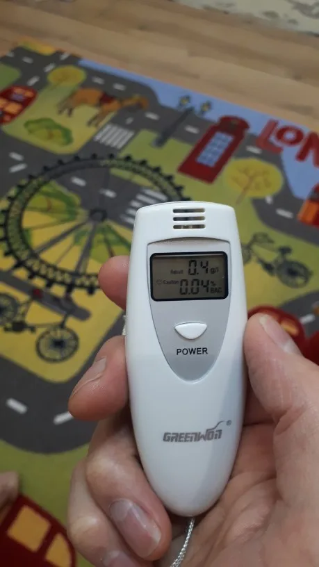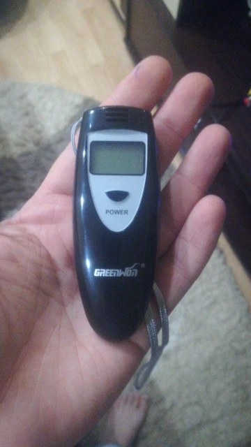 Приехала немного другая модель, свои функции за такие деньги выполняет. Тестировал начиная с пива, добивал сэмом) Дошёл до 0,6 промилле) Утром 0,2 промилле остаточное так же показал. Главное дуть медленно, а то поначалу вдувал от души - ничего не показывал. При обнаружении выхлопа начинает пищать, но почему-то не всегда.