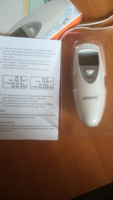 Рабочий аппарат. Продавец прислал в качества бонуса более новую модель чем я заказывал с LED подсветкой. Игрушка неплохая, выпил достаточное количество спиртного показывало 0,5, на утро проснулся с явным перегаром показывало 0,4, с каждым часом до обеда проверял показатель уменьшался. Ну т.е. сравнительно показывает, на какую-то точность я не рассчитываю, так что ок. Приехало за три недели с курьерской доставкой на дом. Так что продавцу 5*.
