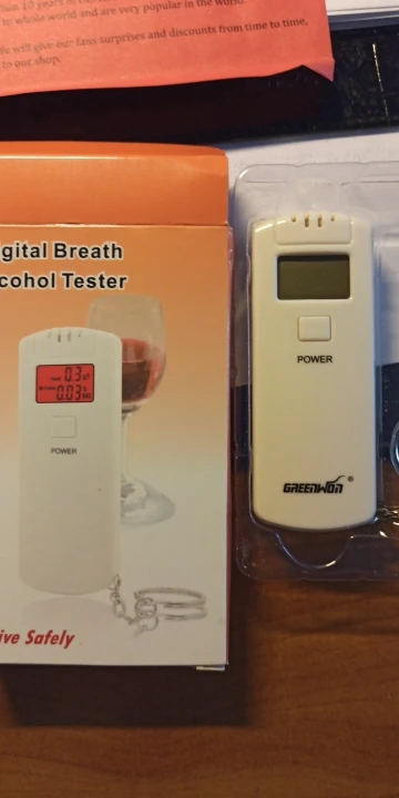 товар пришел быстро, качество хорошее, очень маленький карманный. не пил показывает 0, потом проверю что покажет с алкоголем.
