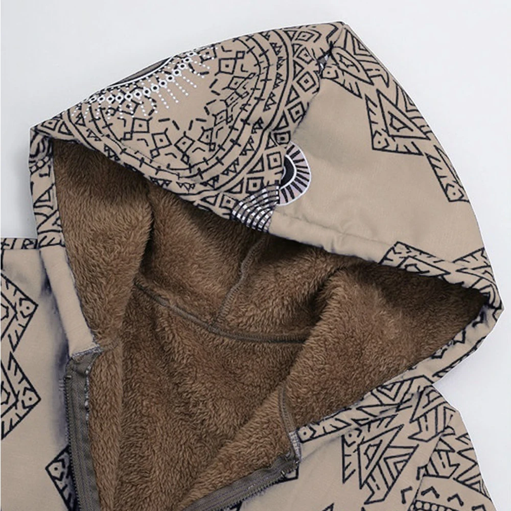 Женское зимнее пальто, повседневное, цветочный принт, с капюшоном, на молнии, хлопок, Женское пальто, винтажное, с карманами, на молнии, свободное, размера плюс, женская верхняя одежда