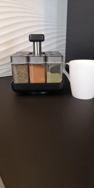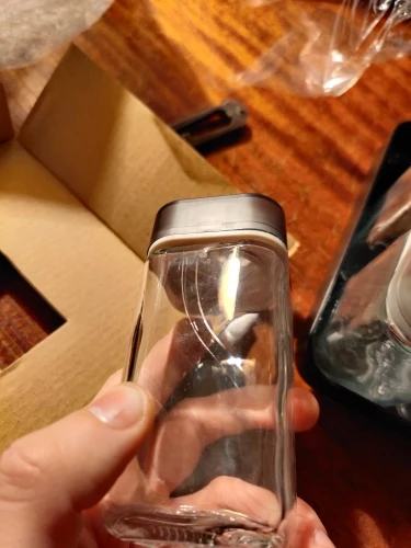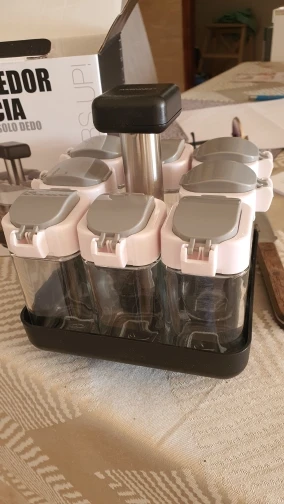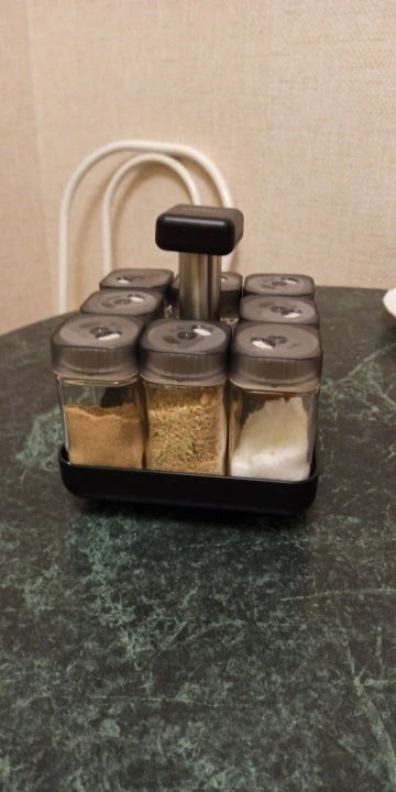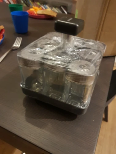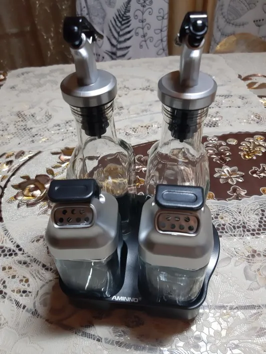 Долгая доставка, а так все целое и хорошо упаковано. Брали в подарок. Думаю будет удобно в использовании, подставка прочный пластик, ёмкости из стекла. Рекомендую