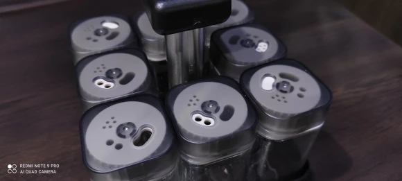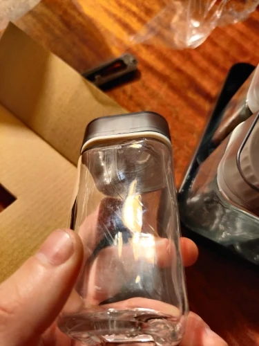 Посылка шла где-то 4 месяца, уже даже открыл спор, но решением было только ожидание. Запаковано всё в кучу пупырки, но нигде на посылке не указано что внутри что-то хрупкое. Коробка мятая, на одной баночке есть скол, на фото вроде видно, все баночки и подставка в пыли и потёртостях. Категорически не рекомендую данного продавца