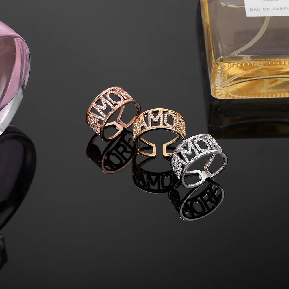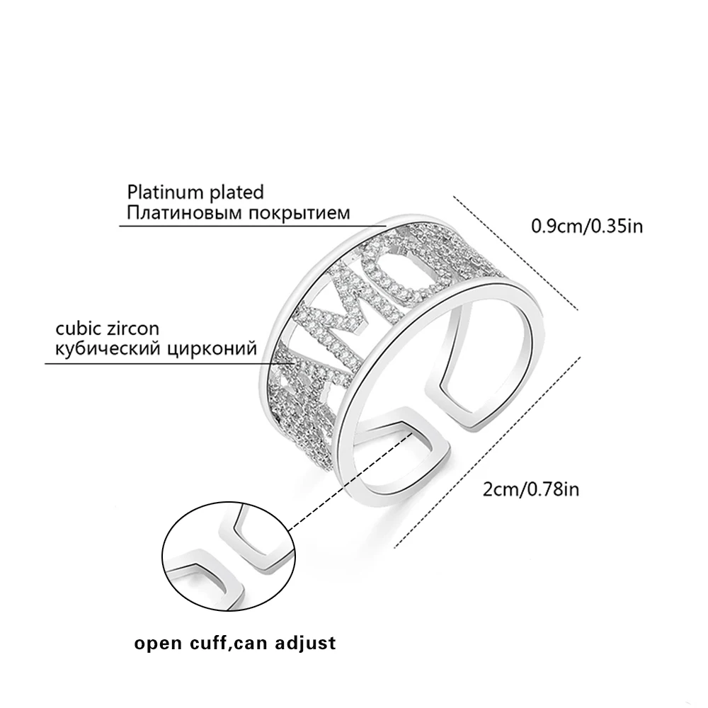 Обручальные кольца для женщин с фианитом регулируемое Открытое кольцо розовое золото алфавитные Роскошные ювелирные изделия годовщина влюблённых Gift 2021