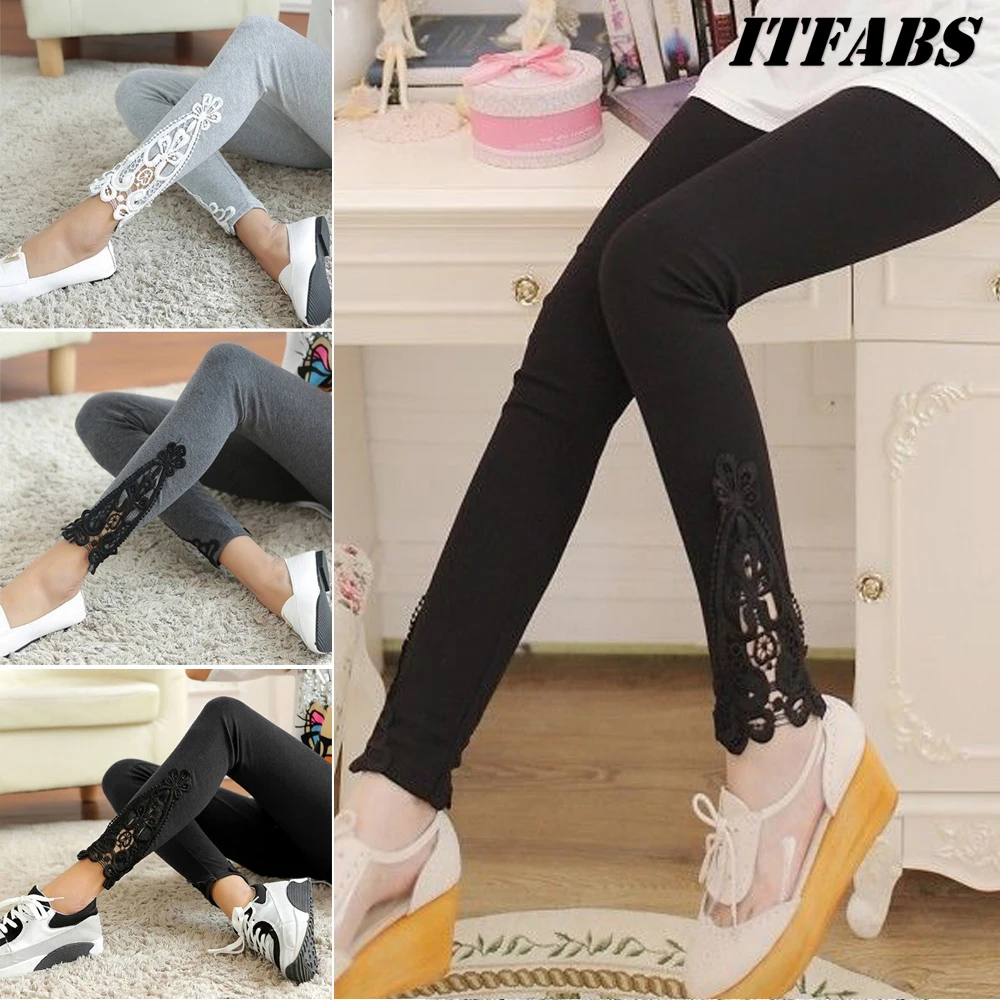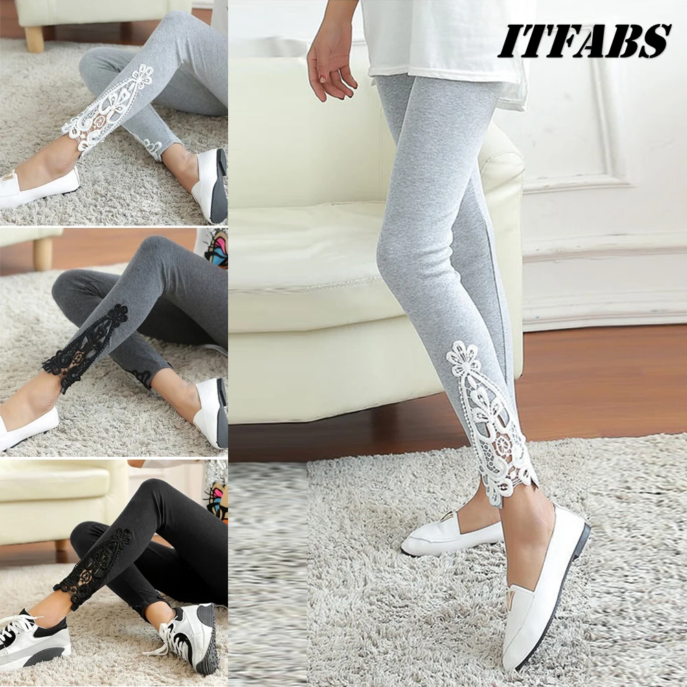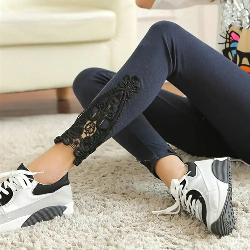 Модные сексуальные облегающие леггинсы женские кружевные вязаные крючком, эластичные джеггинсы, повседневные кружевные леггинсы с высокой талией для фитнеса