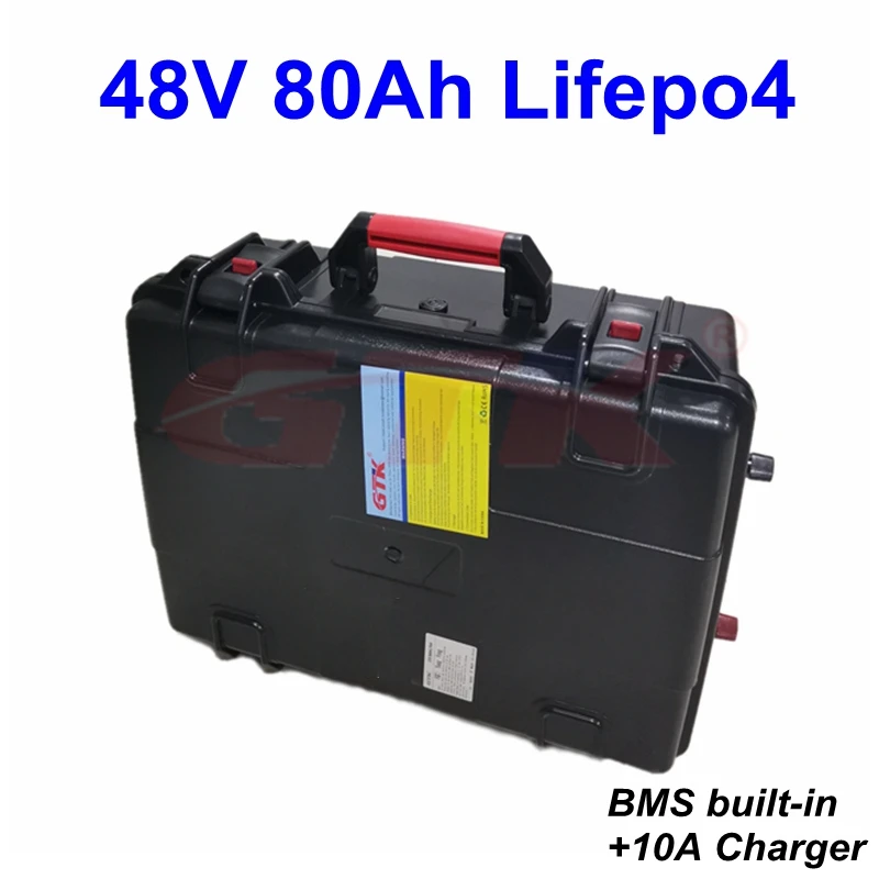 Водонепроницаемая батарея Lifepo4 48 в 80 ач IP67 с BMS для троллингового двигателя скутера, тележки для гольфа 4000 Вт 3000 Вт + зарядное устройство 10 А