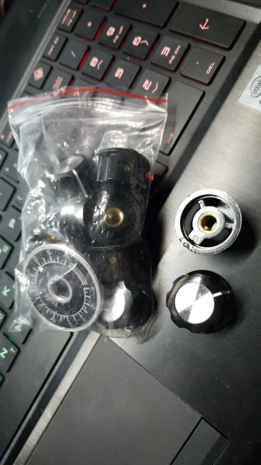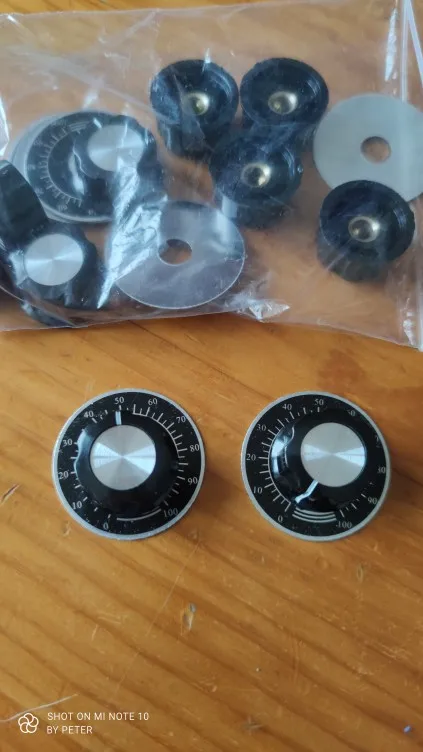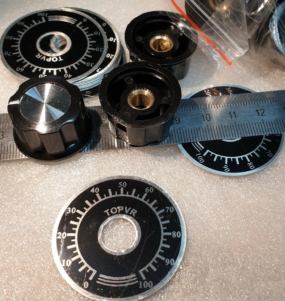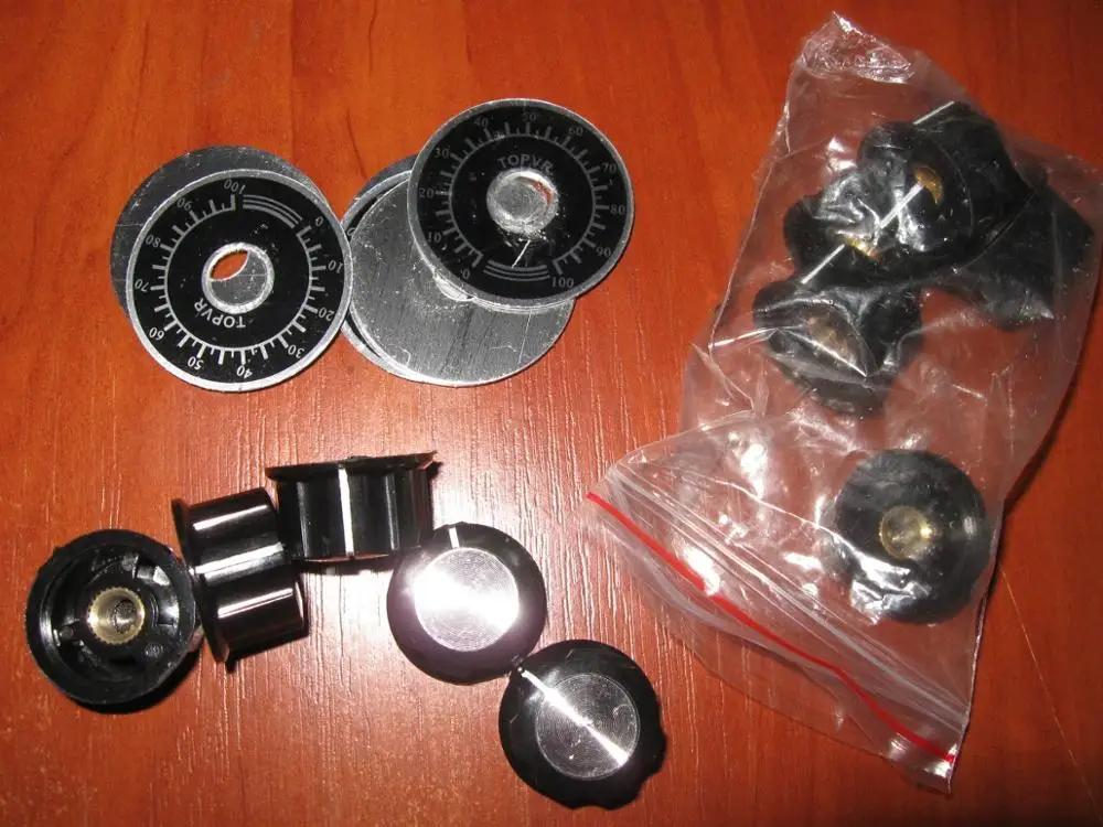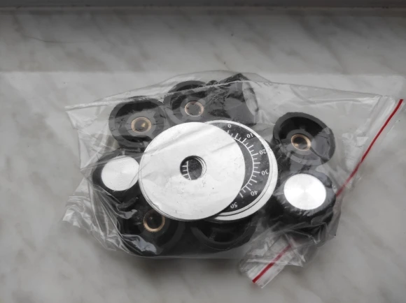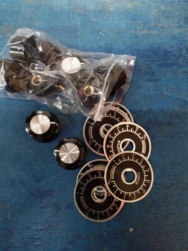 товар приехал в Татарстан за три недели.Упаковано в простой пупырчатый конверт .Количество соответствует . Покраска самой шкалы тонкое .не долго прослужит .Оно то больно и не пригодится под многооборотные резисторы .Налазит на регулятор с наиягом .лучше пройтись сверлом на 6.5 мм что бы убрать все заусенцы и чуть прослабить посадочное отверстие .Качество пластика хорошее .Смахивает на советский карболит .Для дотошных - видно заусенцы .По мне так не мешает работе . Уже заняли свое место на самоделке.