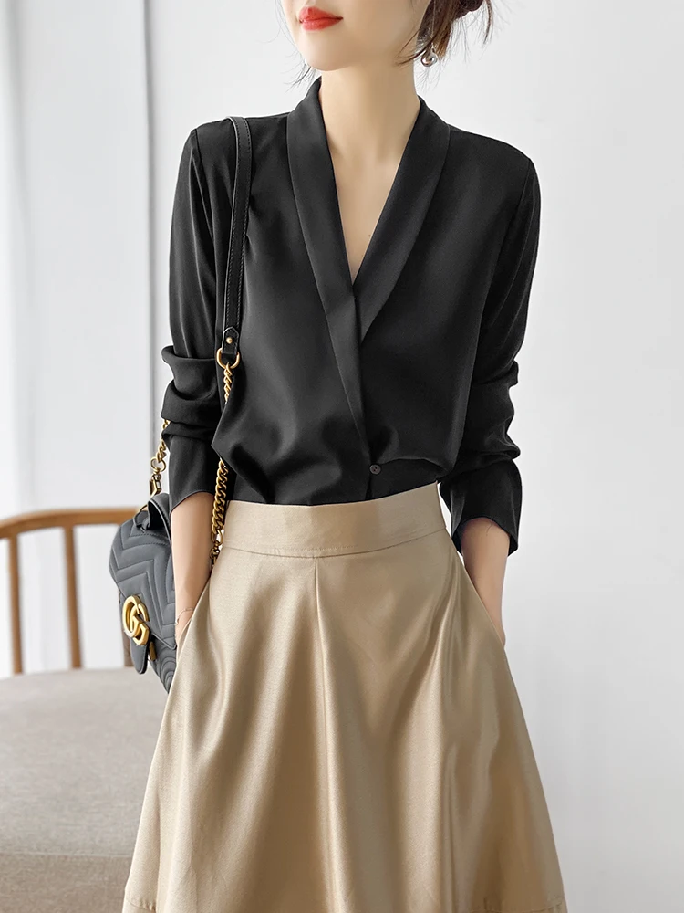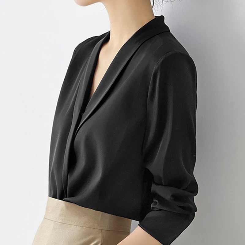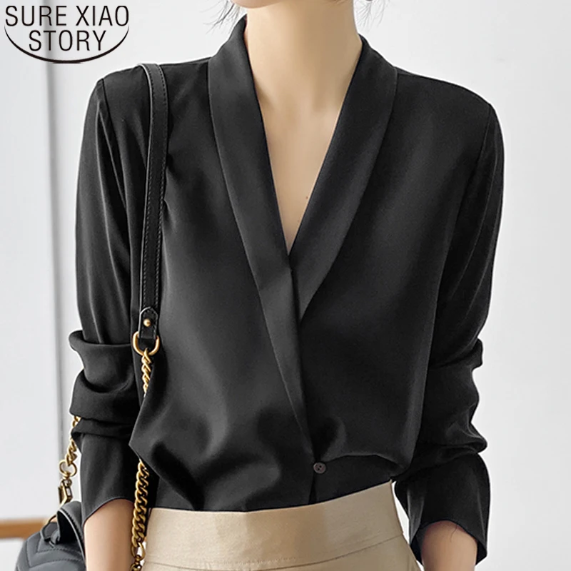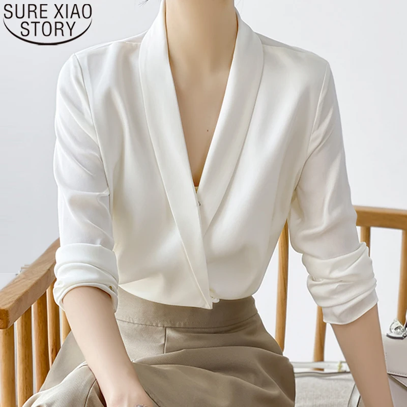 Новая Осенняя белая блузка с длинным рукавом Топы женские рубашки Офисная женская шифоновая блузка с V-образным вырезом Модные женские блузки 2022 одежда 17798