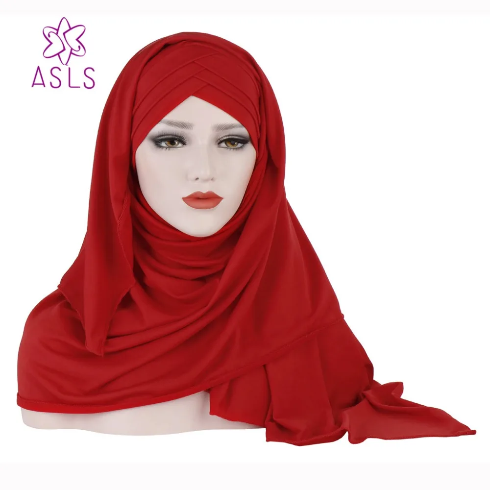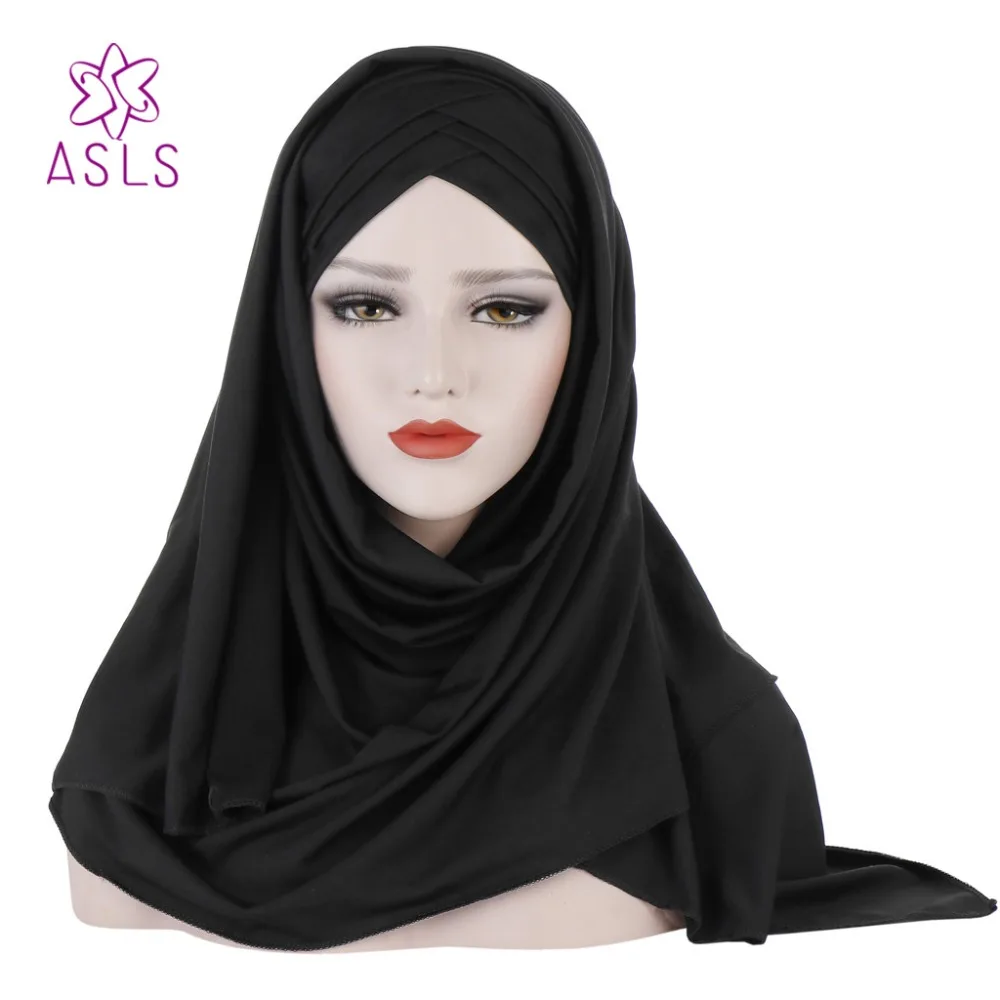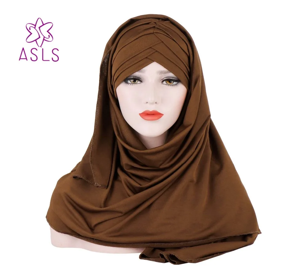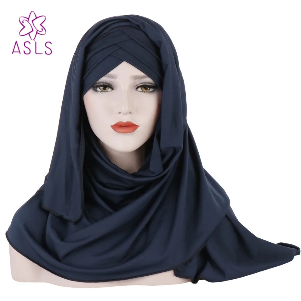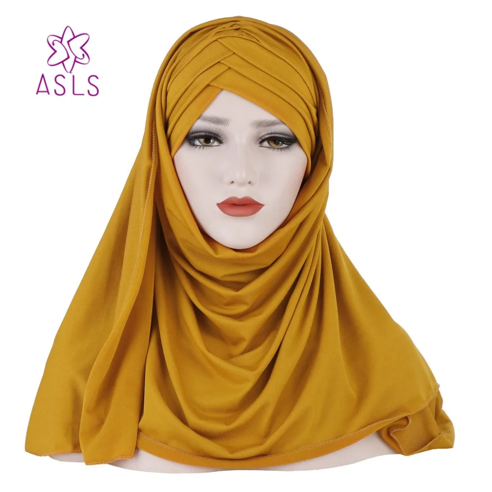 Многоцветный Мягкий Хлопок Мусульманский Платок Мгновенный Джерси Х...