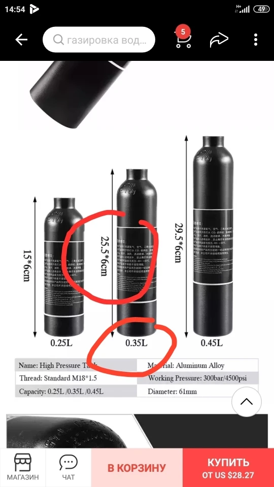 Фотоемкость высокого давления из алюминия, емкость воздушного цилиндра Co2 0,250,35л, емкость цилиндра для пейнтбола фунткв. Дюйм