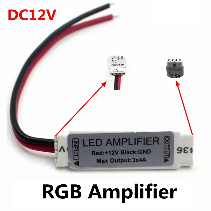 Портативный мини-повторитель усилителя светодиодной ленты RGB 12 В, 3 х4 А, 144 Вт, для светодиодной ленты RGB SMD 505028353528573056303014
