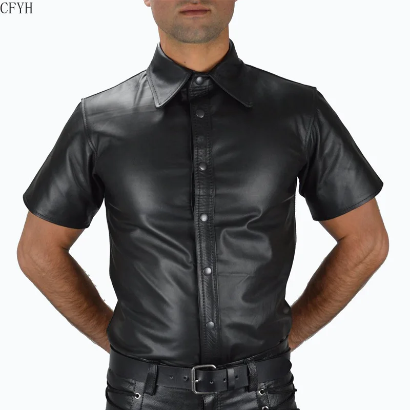Мужская танцевальная футболка, с пуговицами, с коротким рукавом, из искусственной кожи