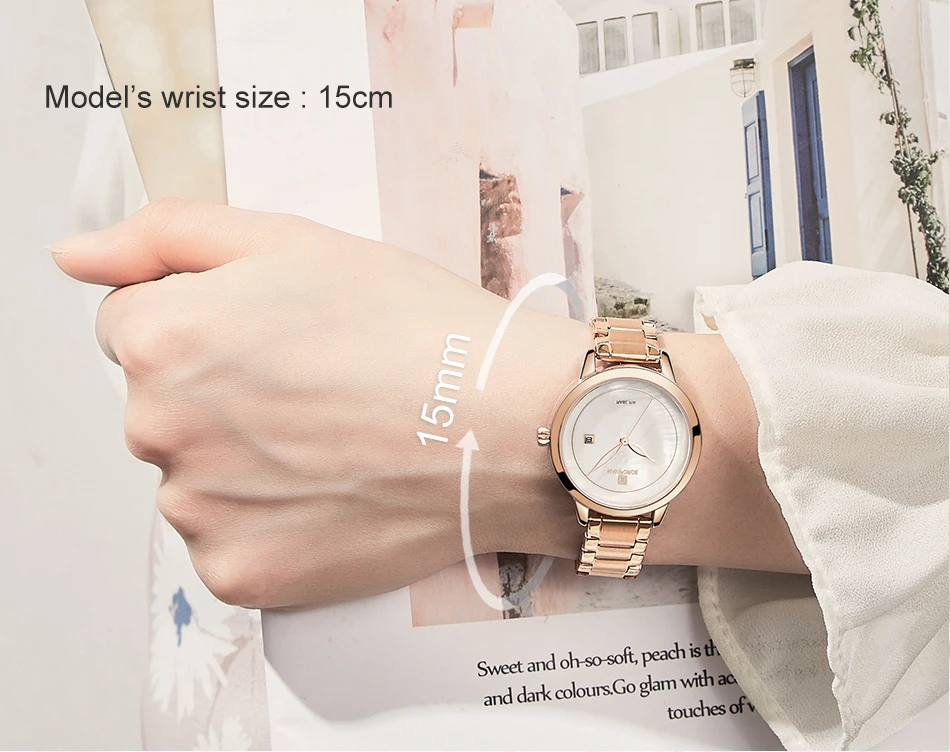Описание 100% новые и высококачественные роскошные дизайнерские женские наручные часы водонепроницаемые японские кварцевые часы Технические характеристики Материал корпуса: сплав диаметр корпуса: 33 мм Толщина корпуса: 8 мм длина ремешка (включая корпус): 190 мм ширина ремешка: 14 мм В комплект входит 100% оригинальный бренд NAVIFORCE Новинка 1 x Роскошные дизайнерские женские наручные часы NAVIFORCE