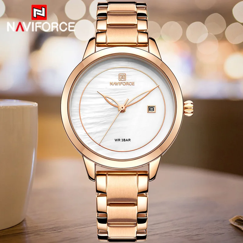Часы наручные NAVIFORCE женские кварцевые, роскошные брендовые водонепроницаемые Модные, для девушек