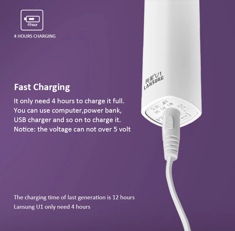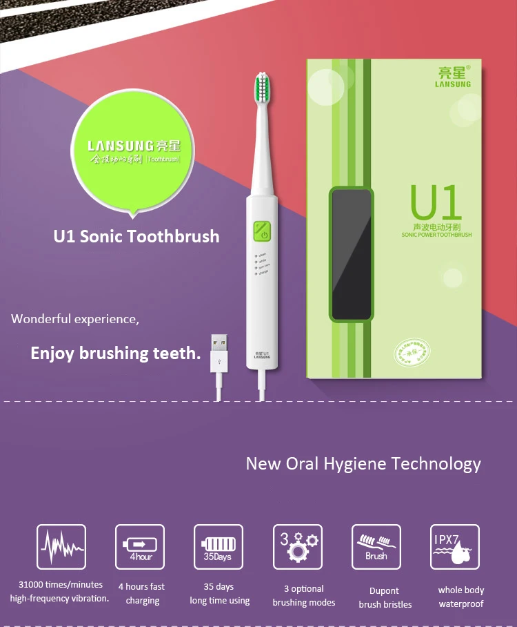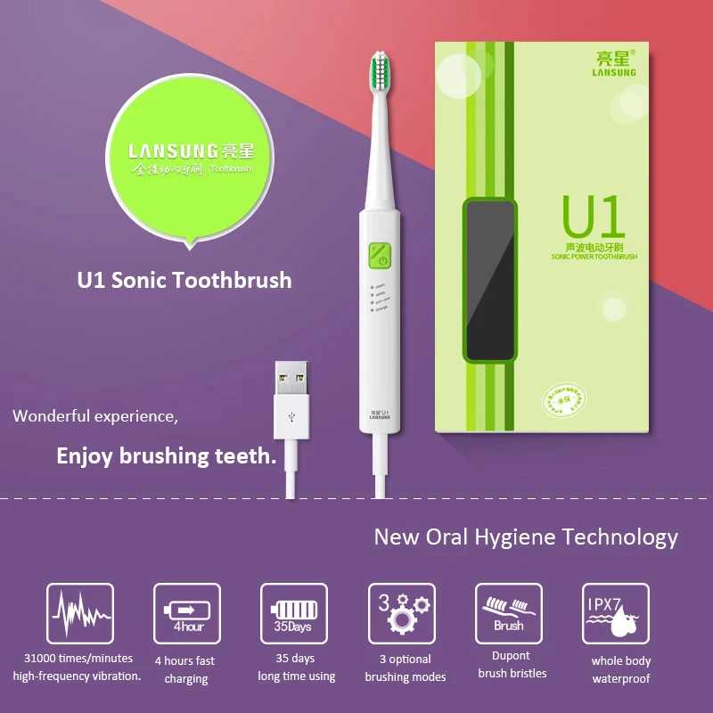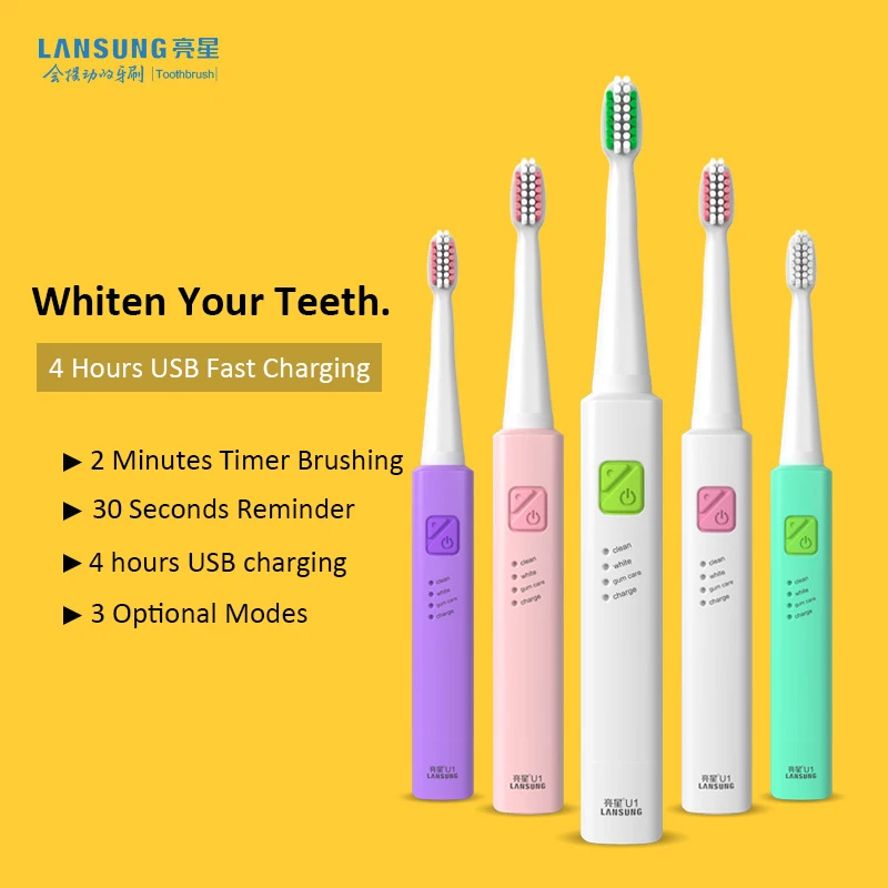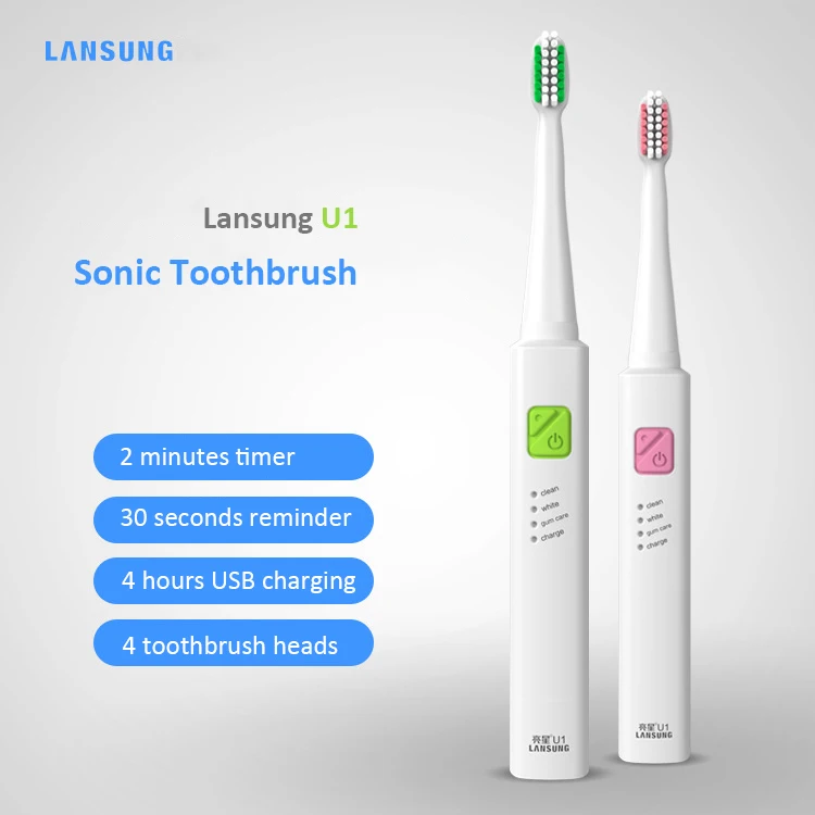Зубная щетка Lansung U1 Sonic, 4 сменных насадки для зубной щетки, перезаряжаемая зубная щетка для взрослых и детей