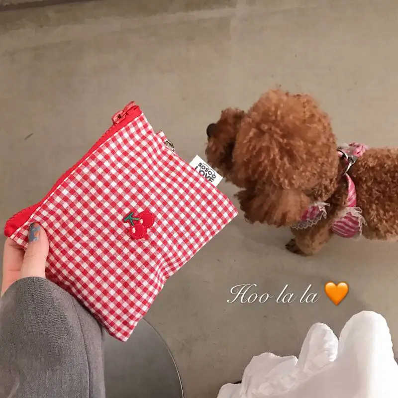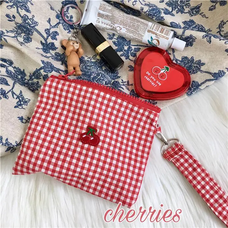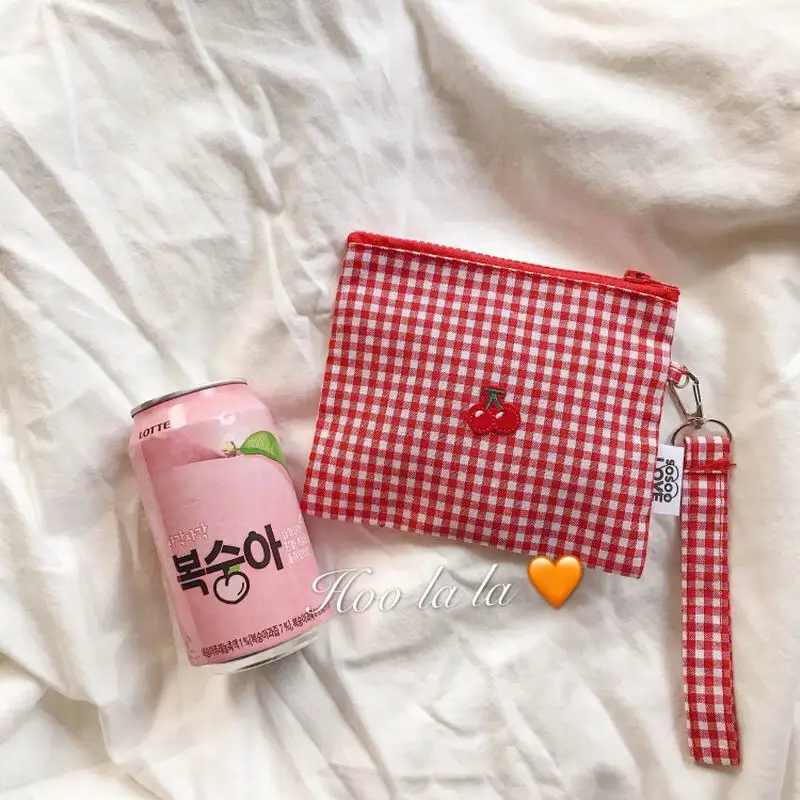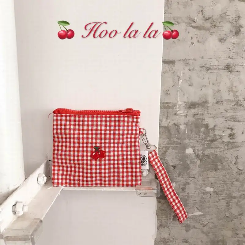 Тканевая тканевая плетеная Сумка вишневого цвета, милые сумки на молнии для женщин и девочек, вместительный чехол для косметики с держателем для карт