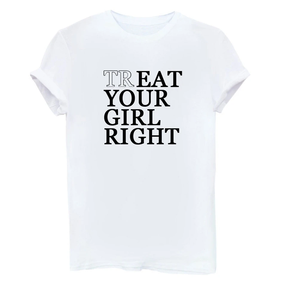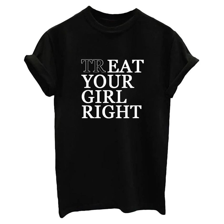Женская Повседневная забавная одежда, хлопковые топы, футболка с надписью TREAT YOUR GIRL, черно-белая футболка гранж, футболка goth Shirt-J790