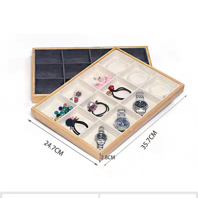 Шкатулка для ювелирных украшений из бамбукового дерева и бархата, органайзер для хранения колец, серег, цепочек, браслетов, подвесок, 1 шт.