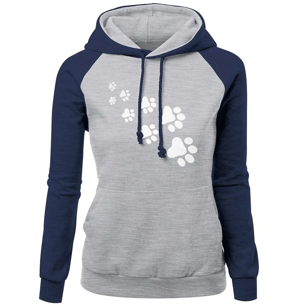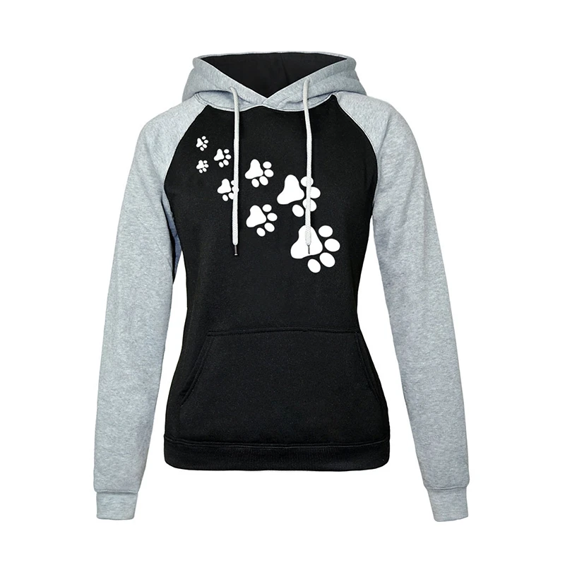 Женский пуловер с рукавом толстовки кошка отпечаток когтя худи свободного кроя из контрастного Цвет Толстовка для женщин Sudadera Mujer Sudaderas Para Mujer