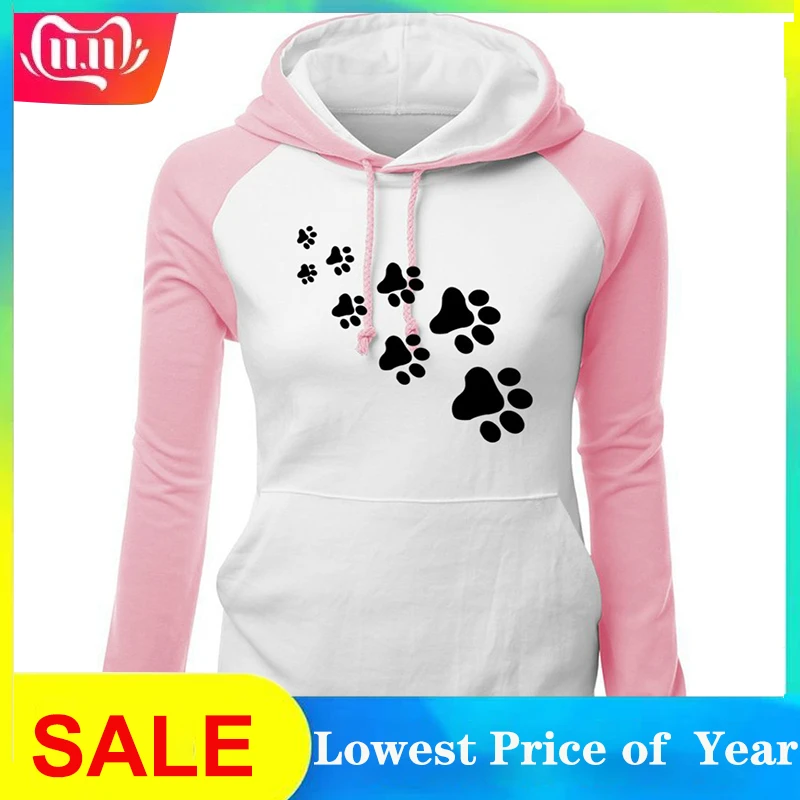Пуловер с капюшоном, толстовки с принтом кошачьей лапы, новинка 202...