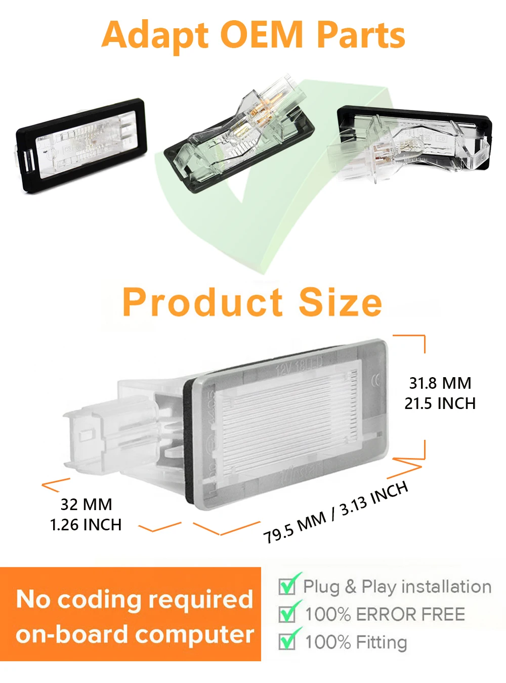 Продавец быстро отправил заказ и пришел за 13 дней в Киев. Брал для Fluence 2010 года. Сам светильник вустановился плотно без люфтов. Светит ярко но только под собой. Рассеивание почти нет. Грубо говоря светит на первые два и последние символа номерного знака.