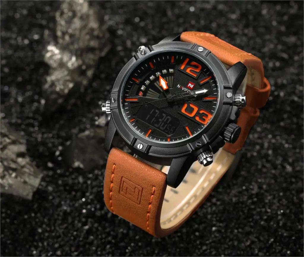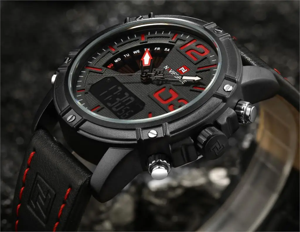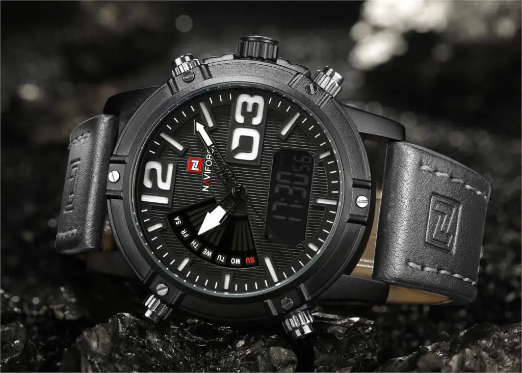 Часы NAVIFORCE мужские с кожаным ремешком, цифровые водонепроницаем...