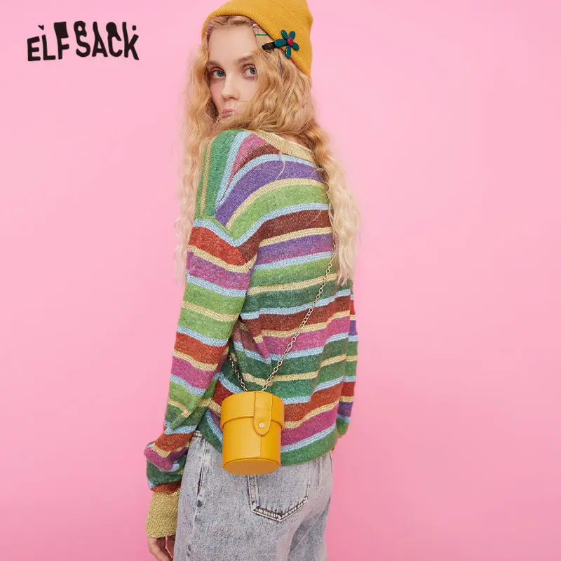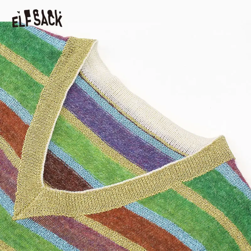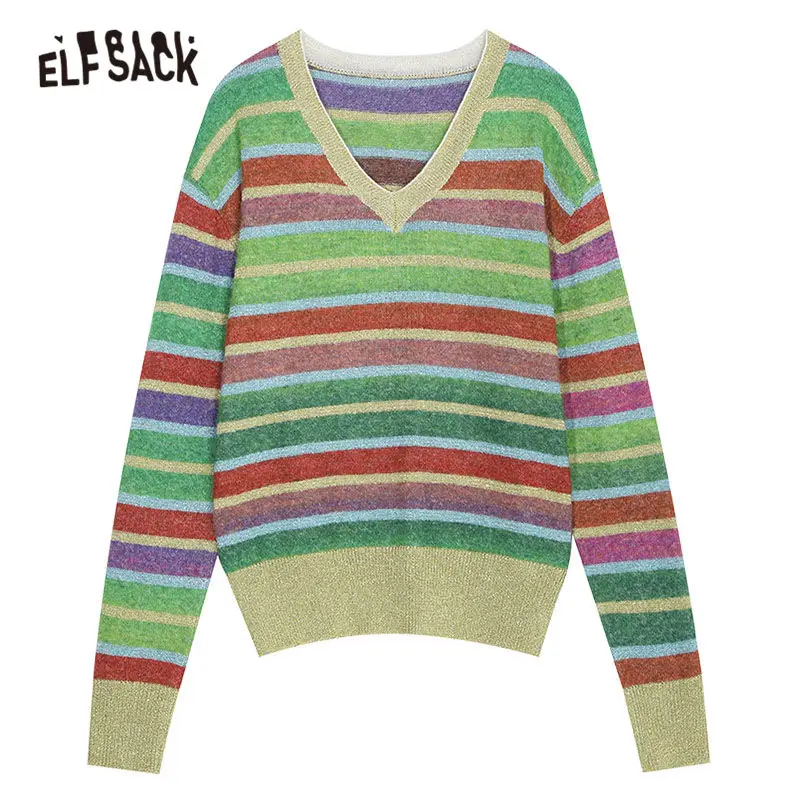 Женский трикотажный свитер в полоску, с V-образным вырезом