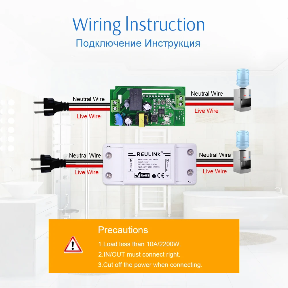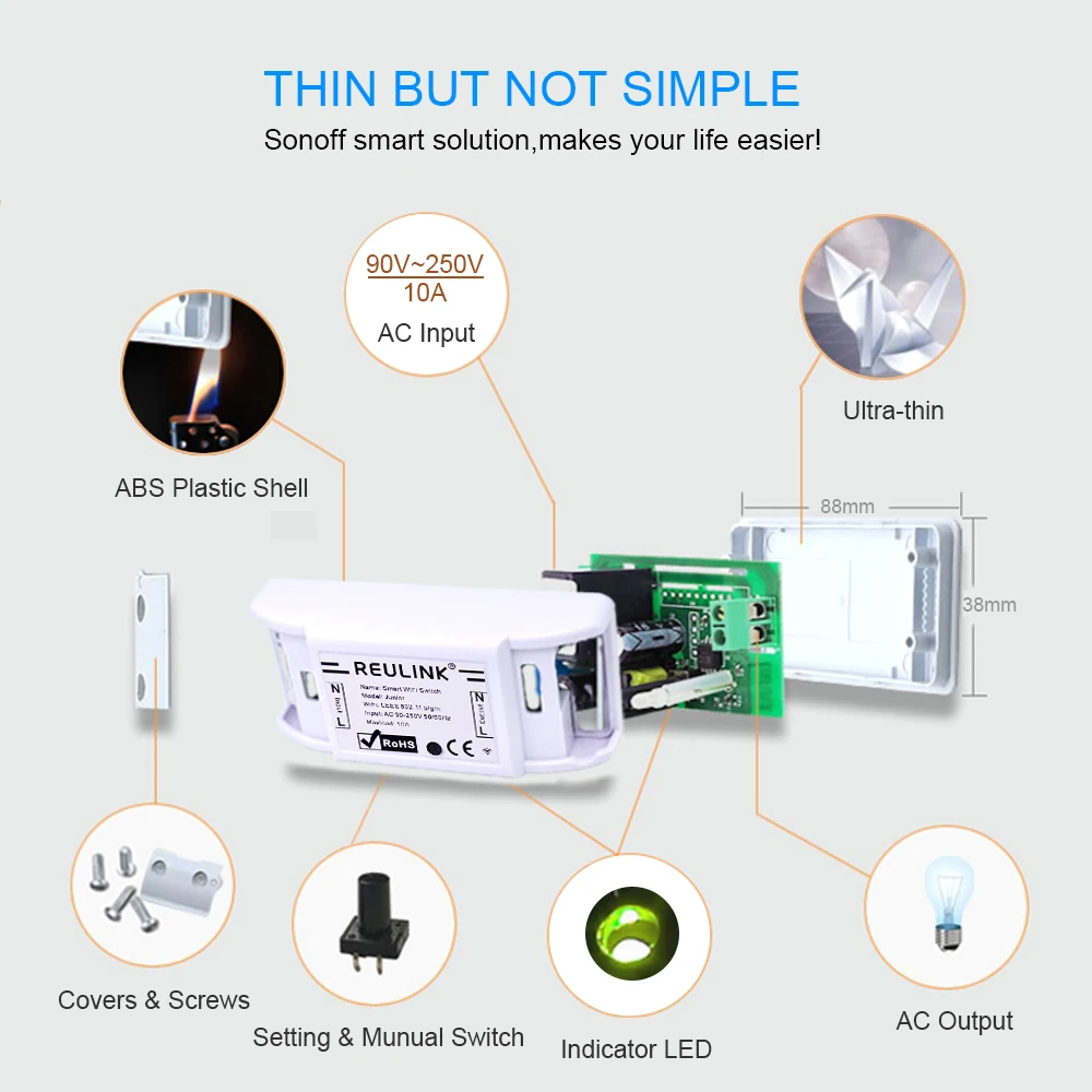Этот электрический переключатель WiFi передает данные на облачную платформу через Wi-Fi роутер, который позволяет пользователям удаленно управлять всеми подключенными устройствами, через мобильное приложение eWeLink.