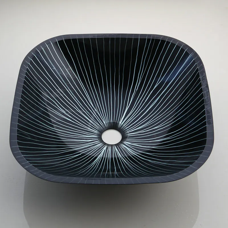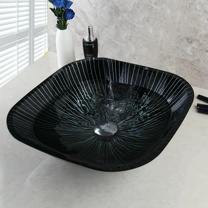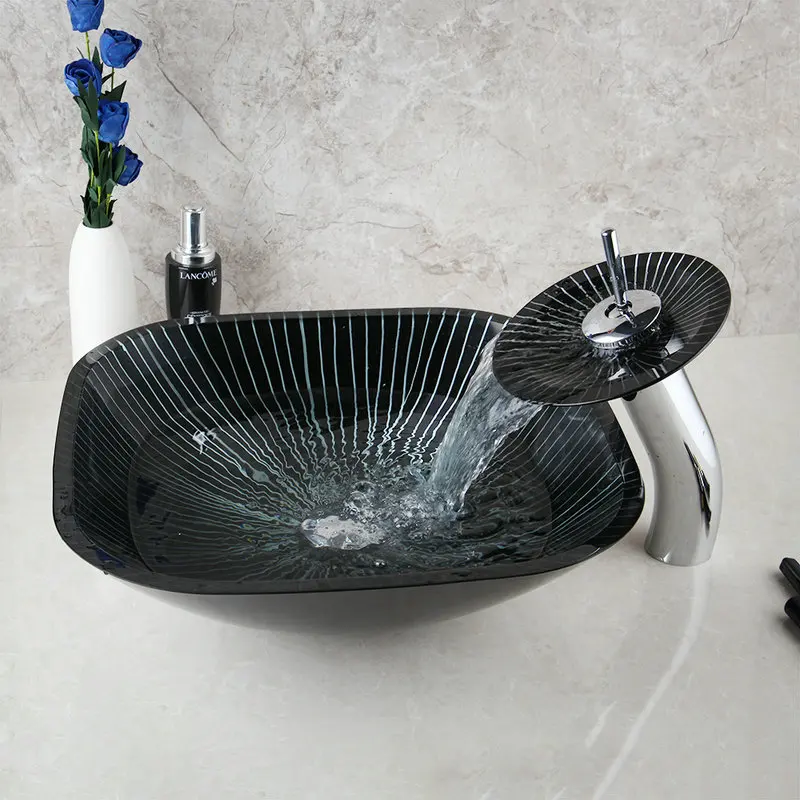 Monite квадратная черная раковина для ванной комнаты, умывальник, набор для ванны, смеситель для раковины, художественный дизайн, закаленное стекло, ручная роспись, водопад, тазик
