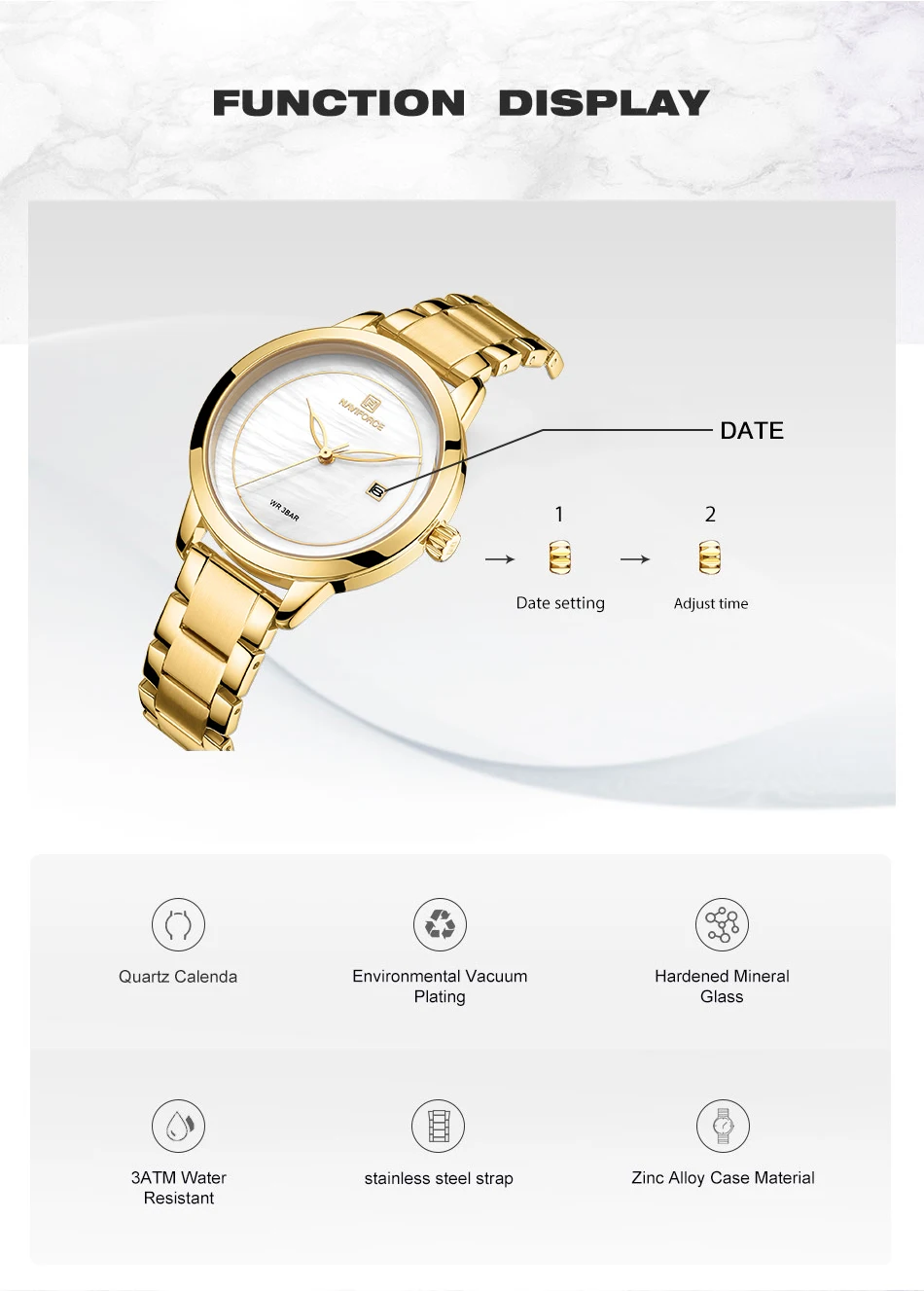 Часы наручные NAVIFORCE женские кварцевые, брендовые роскошные модные водонепроницаемые повседневные