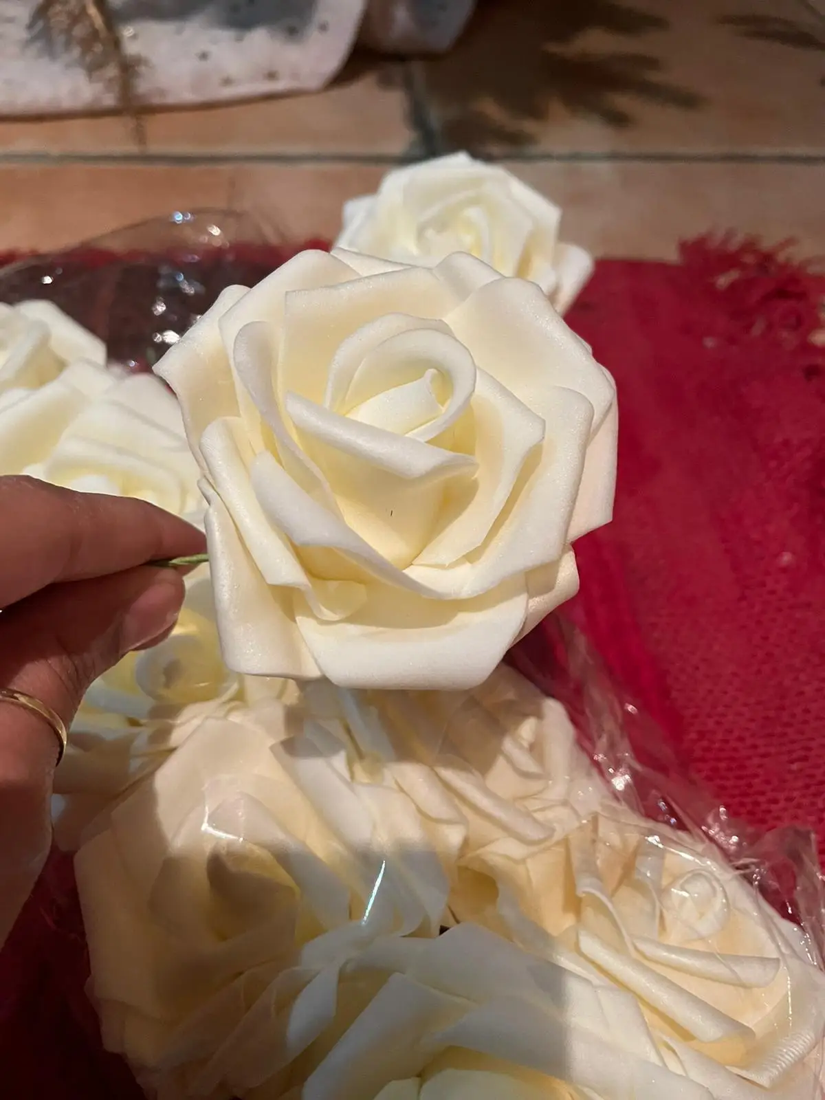 Мне они действительно нравятся. Я заказал 5 комплектов разных цветов. Я заказал на 15/09, и они появились на 15/10, поэтому прошло около месяца. Они немного сломались. Они действительно красивые. Диаметр около 7-8 см. Я создаю цветочную стену и буду покупать их снова, если мне больше нужны цветы. Продавец тоже был хорош, отправил мне сообщение, указав, что товар был отправлен.
