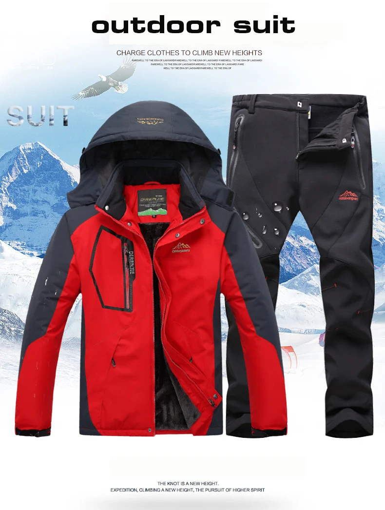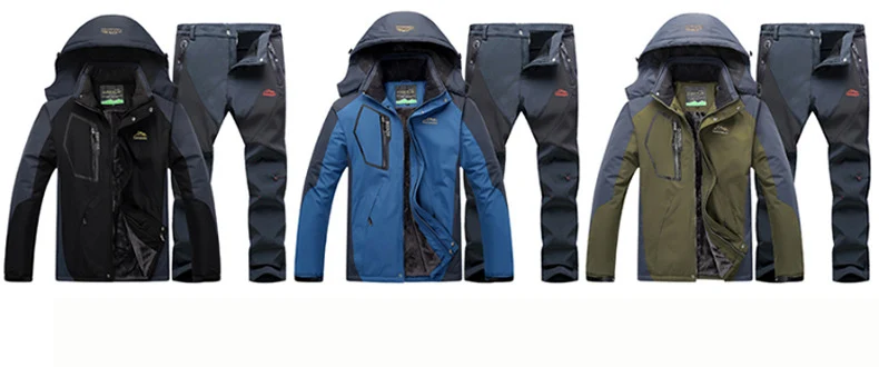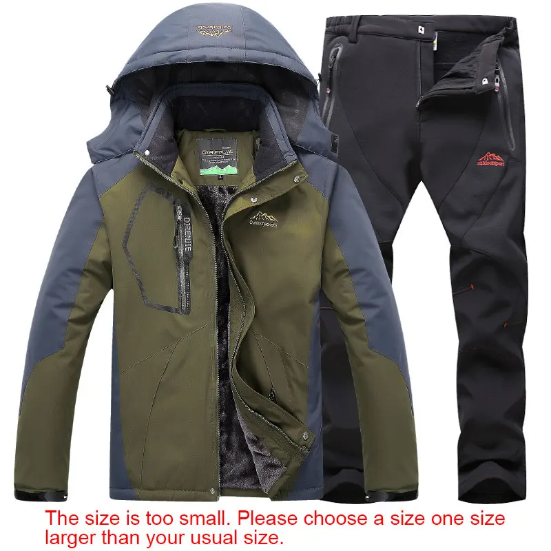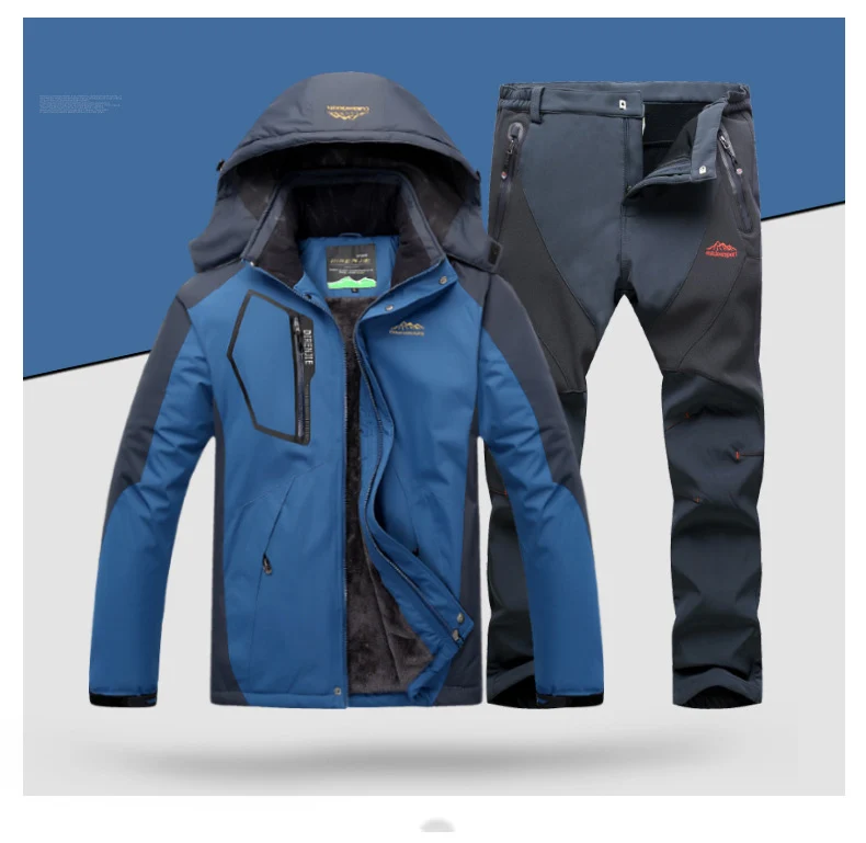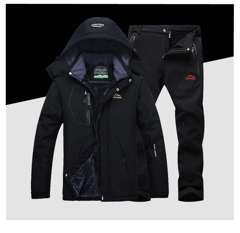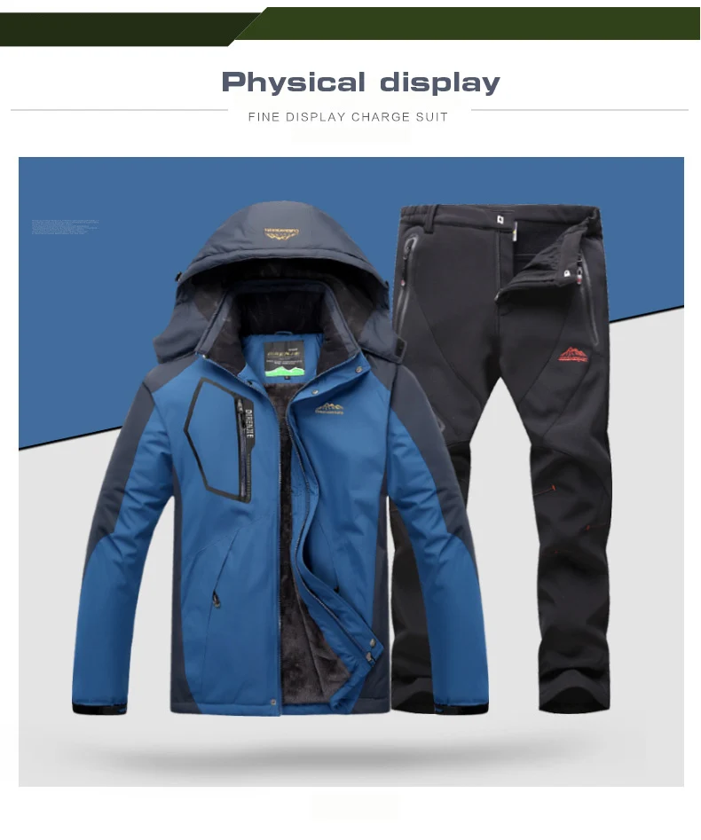 Зимний лыжный костюм для мужчин, комплекты для катания на лыжах и сноуборде, Флисовая теплая водонепроницаемая ветрозащитная флисовая куртка + штаны, мужской лыжный костюм на открытом воздухе