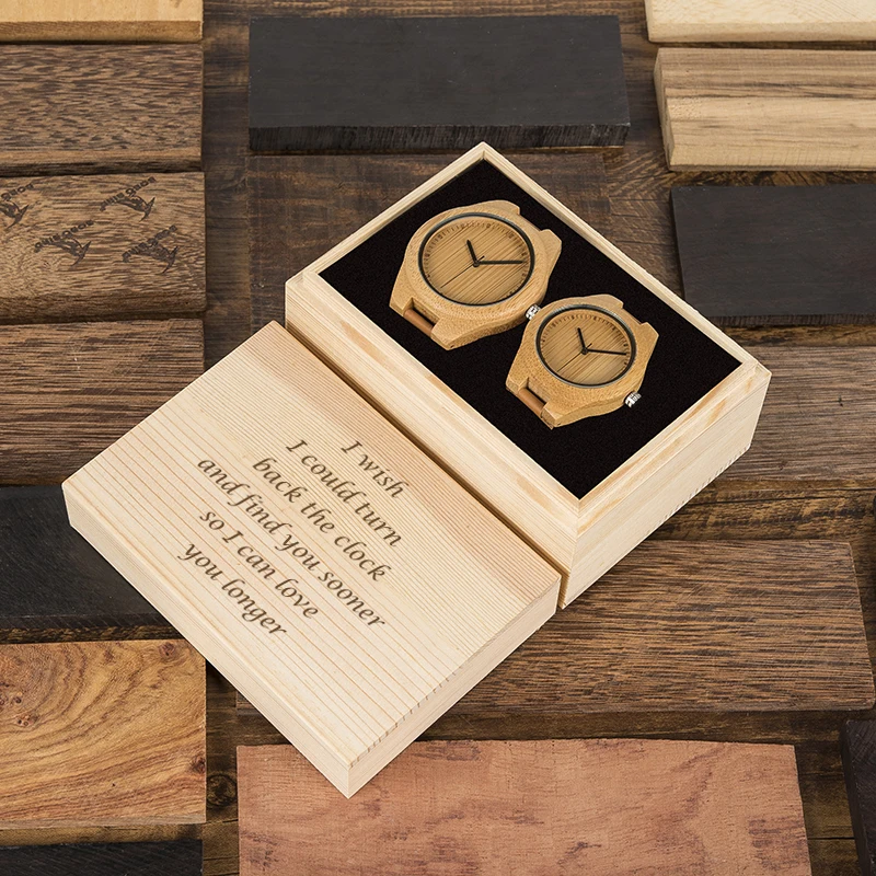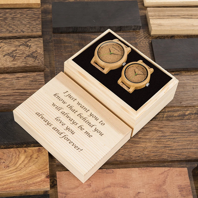 1. Примечания: Пожалуйста, разместите заказ, выберите модель, которая вам нравится. Затем отправьте сообщение, что вы хотите выгравировать в коробке. 2. Посылка: часы для одной женщины, часы для мужчин и деревянная коробка с гравировкой. 3. Гарантия: один год.