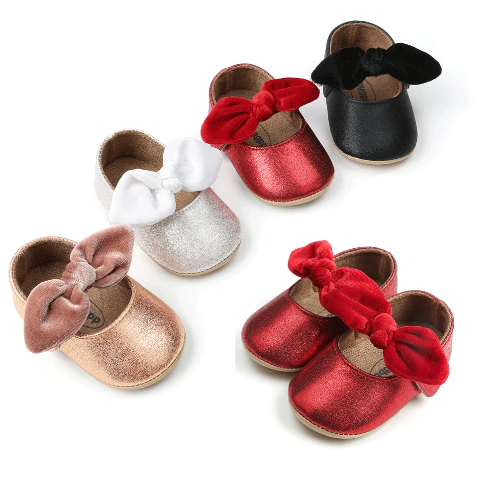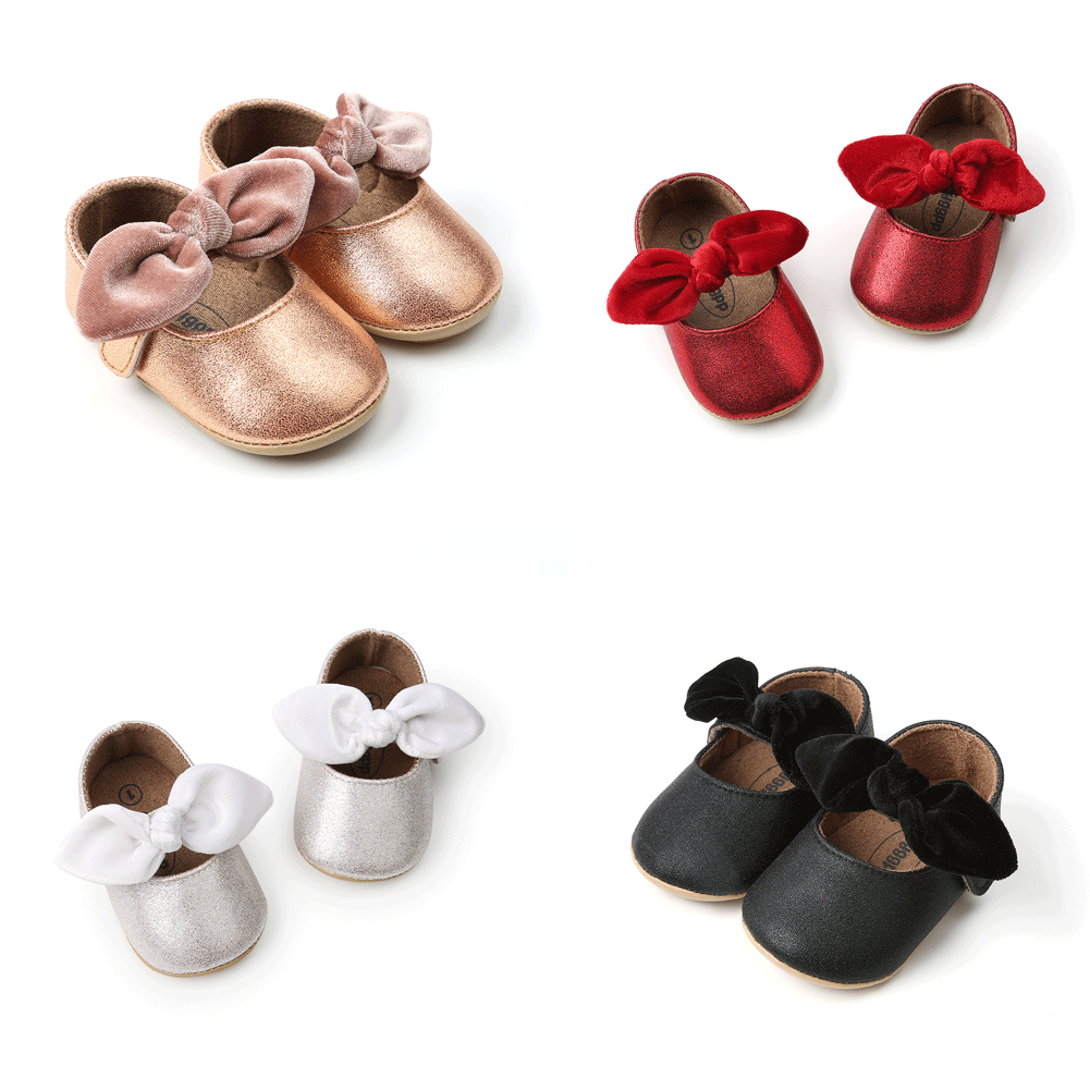 Туфли для новорожденных девочек, мягкая подошва из искусственной кожи, повседневная обувь принцессы с бантиками, для свадьбы, вечеринки, под платье