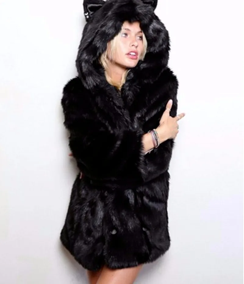 Зимняя женская мужская шуба из искусственного лисьего меха 2019 Повседневная размера плюс парная Меховая куртка с капюшоном кошачьи ушки теплая унисекс приталенная куртка пальто