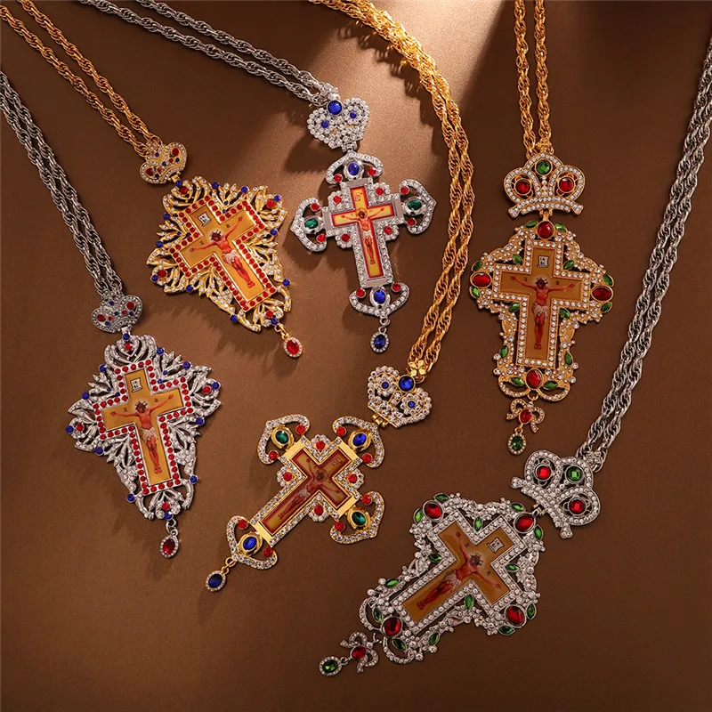 Православный грудной крест, корона, икона, византийский католический распятие, ожерелье с подтверждением подвески, длинное ожерелье